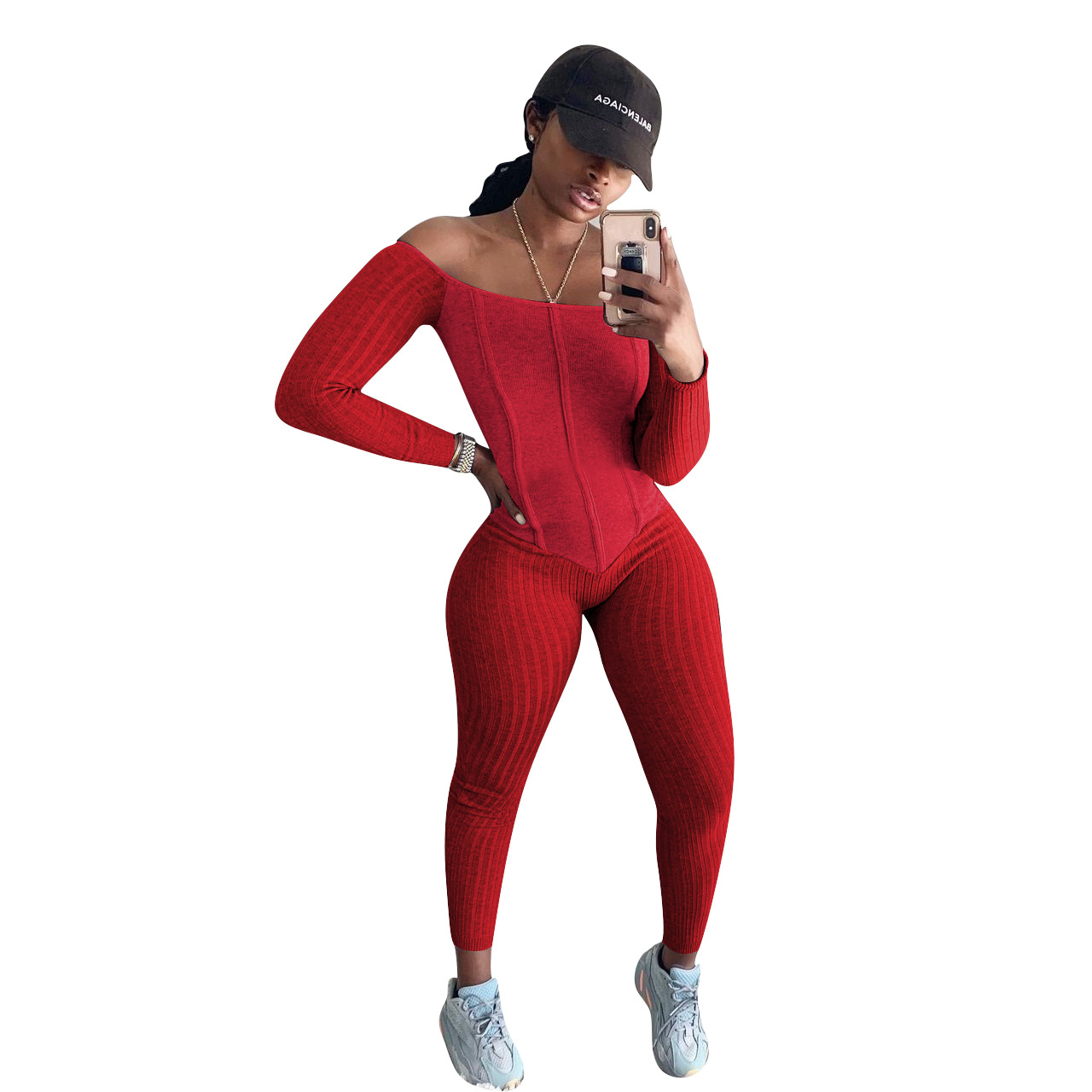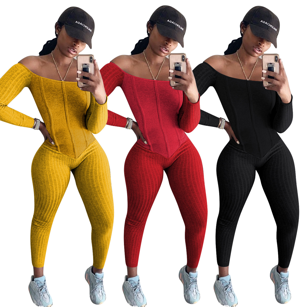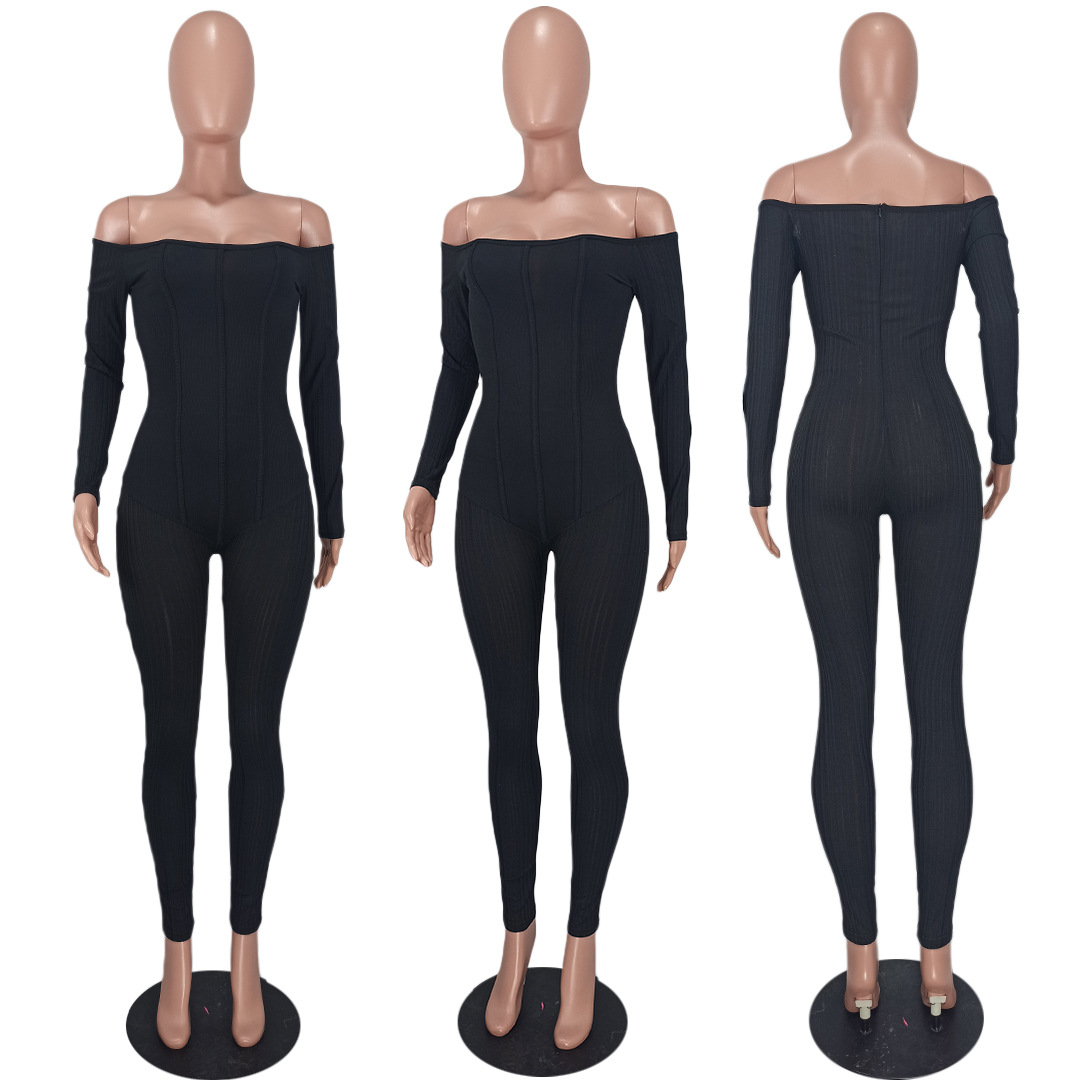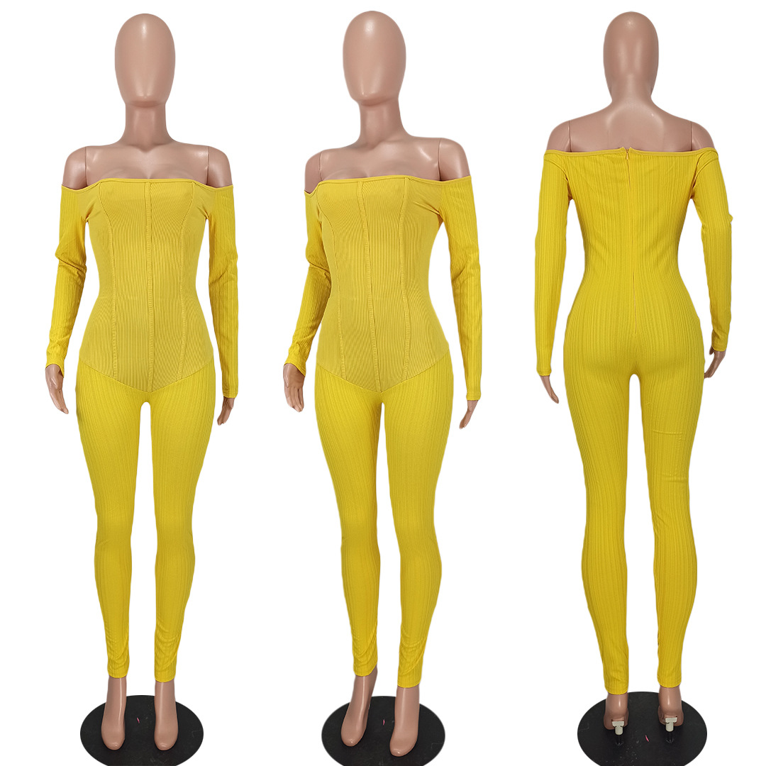 Copy| Product Name | Women's Sexy Off-Shoulder Ribbed Multi-Color Jumpsuit |
