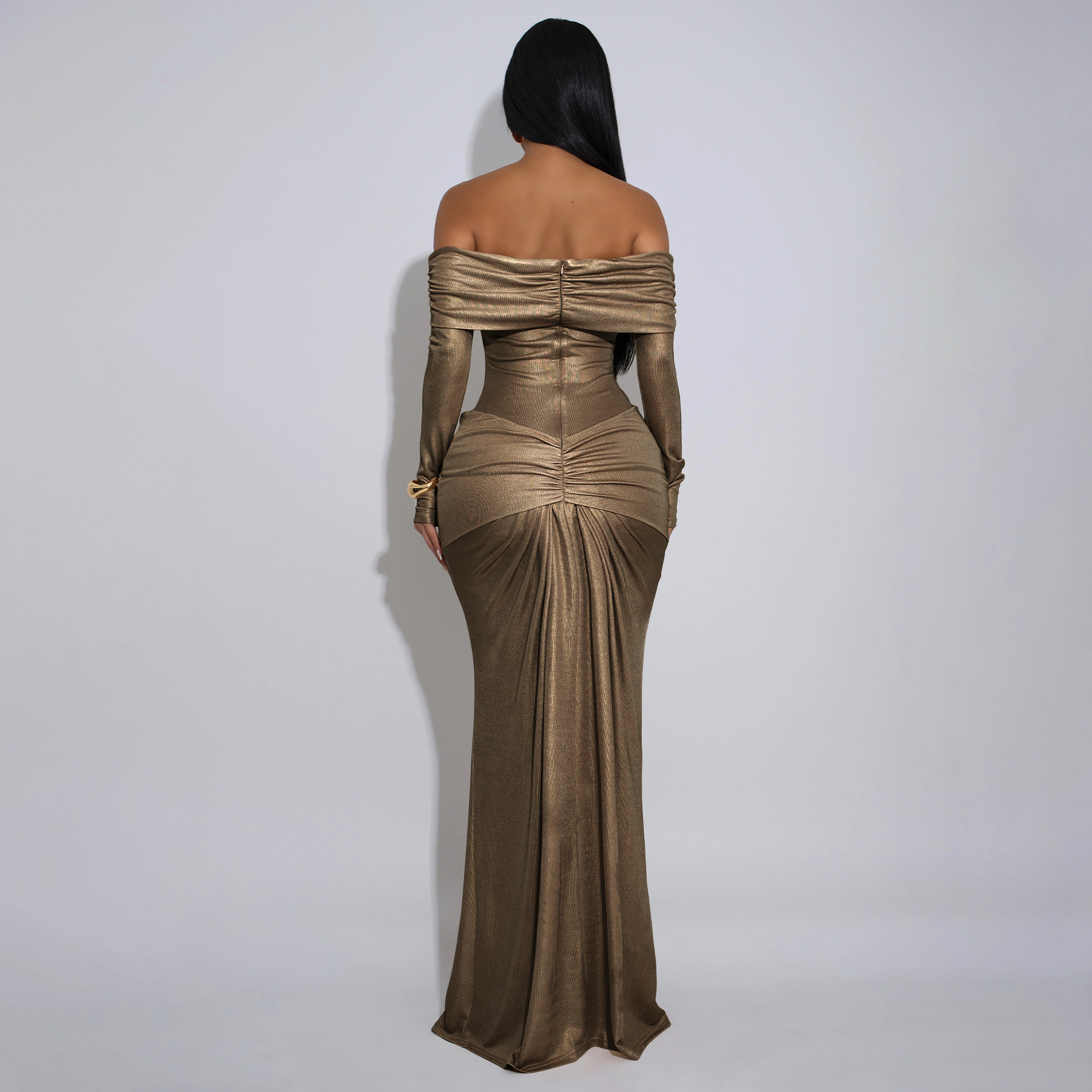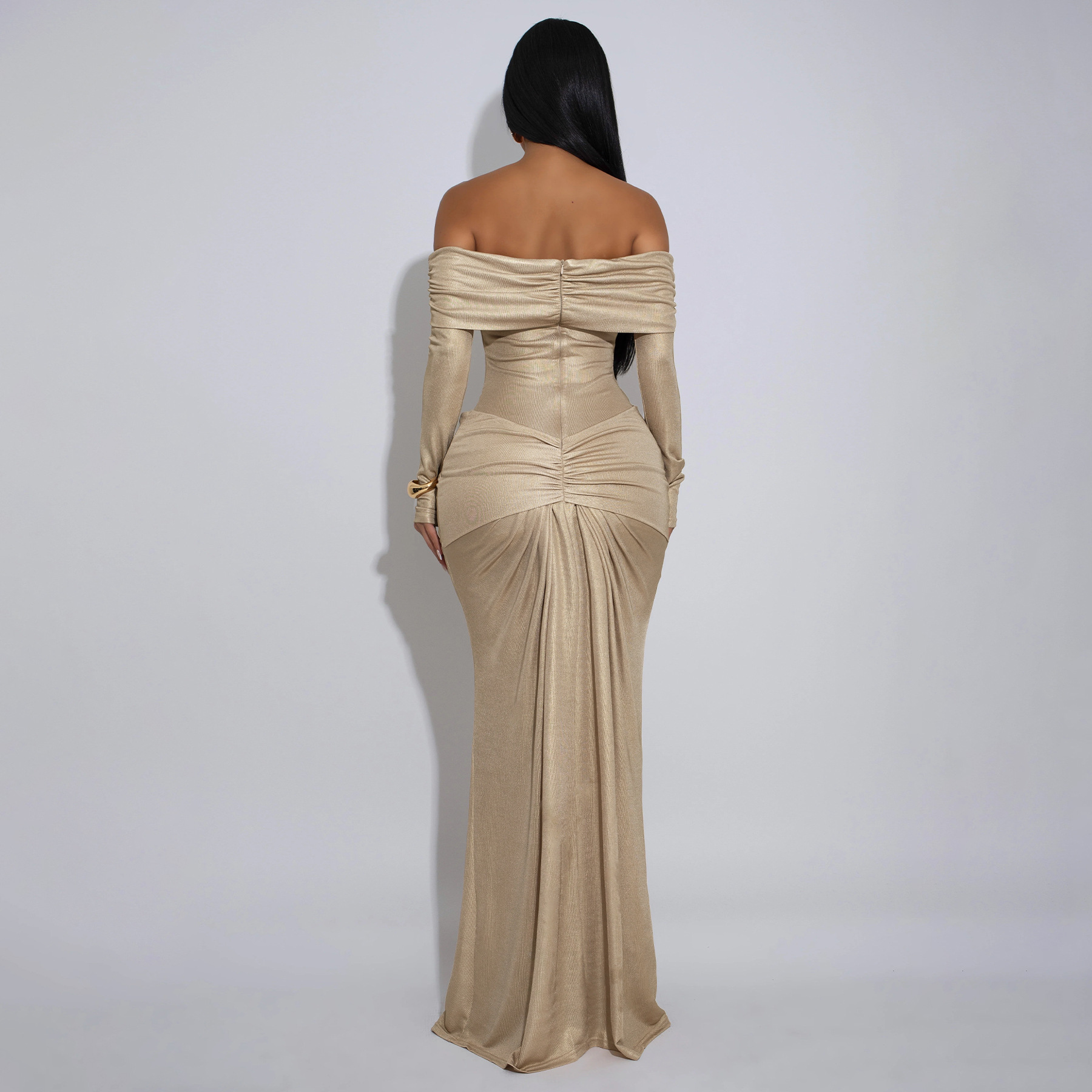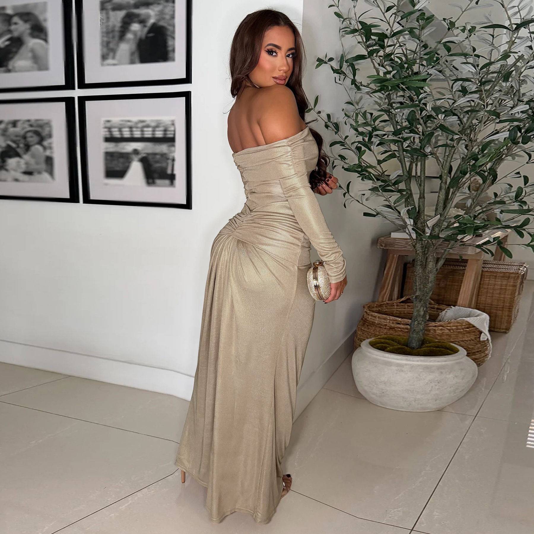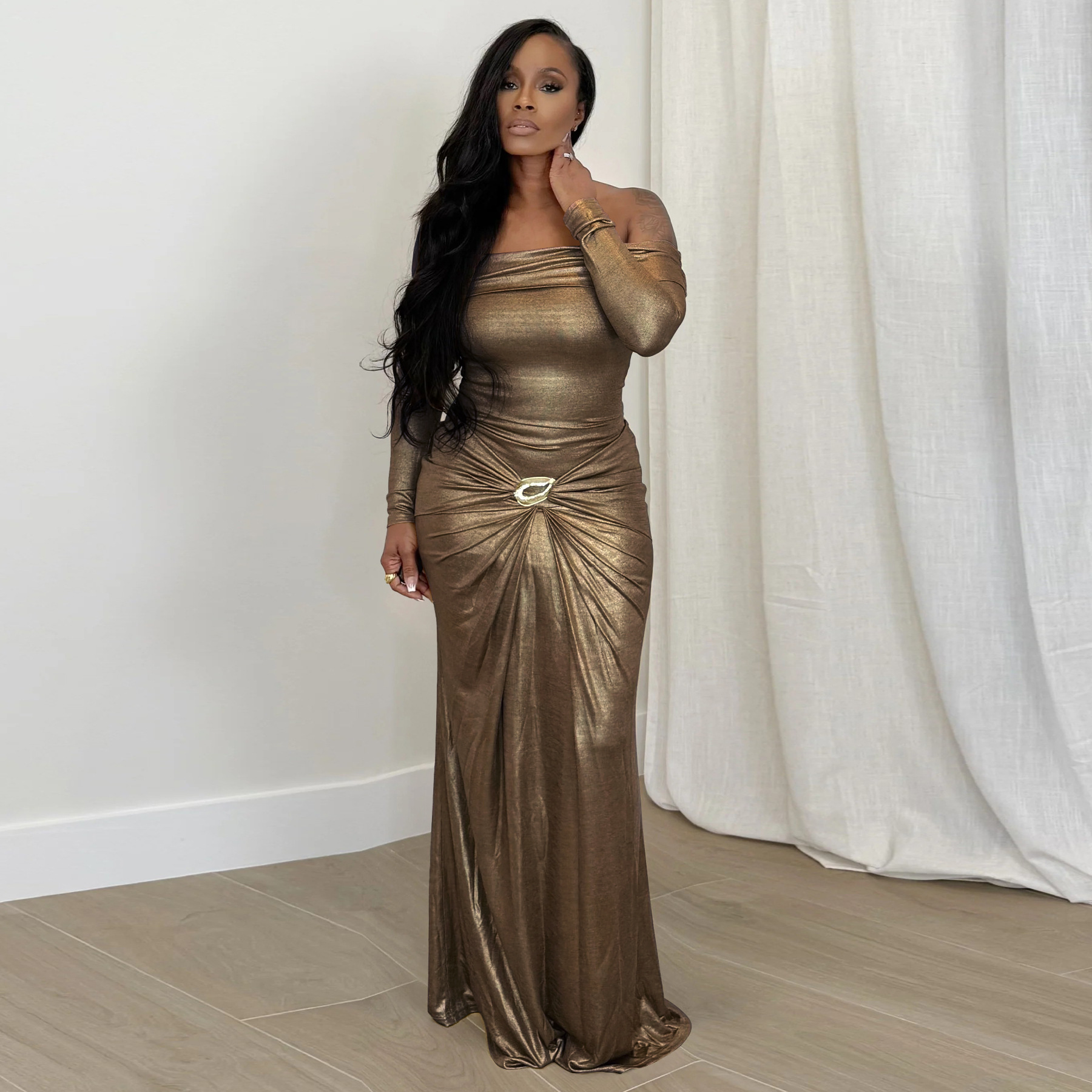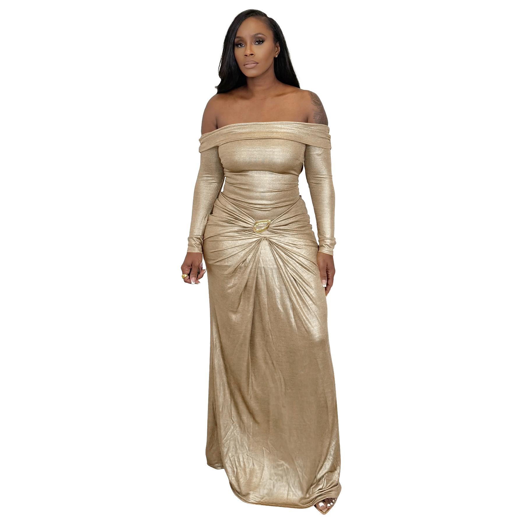 Copy| Product Name | Women's Sexy Off Shoulder Slim Fit Long Sleeve Glossy Long Dress |