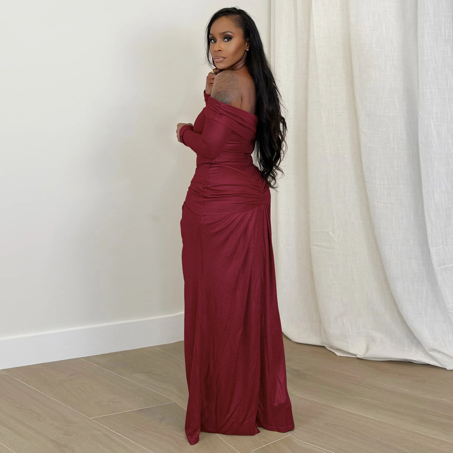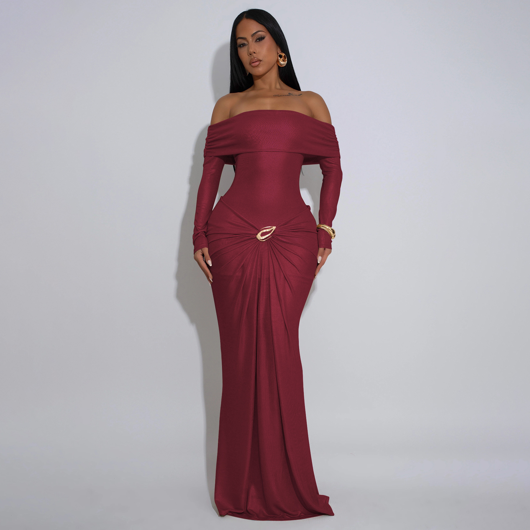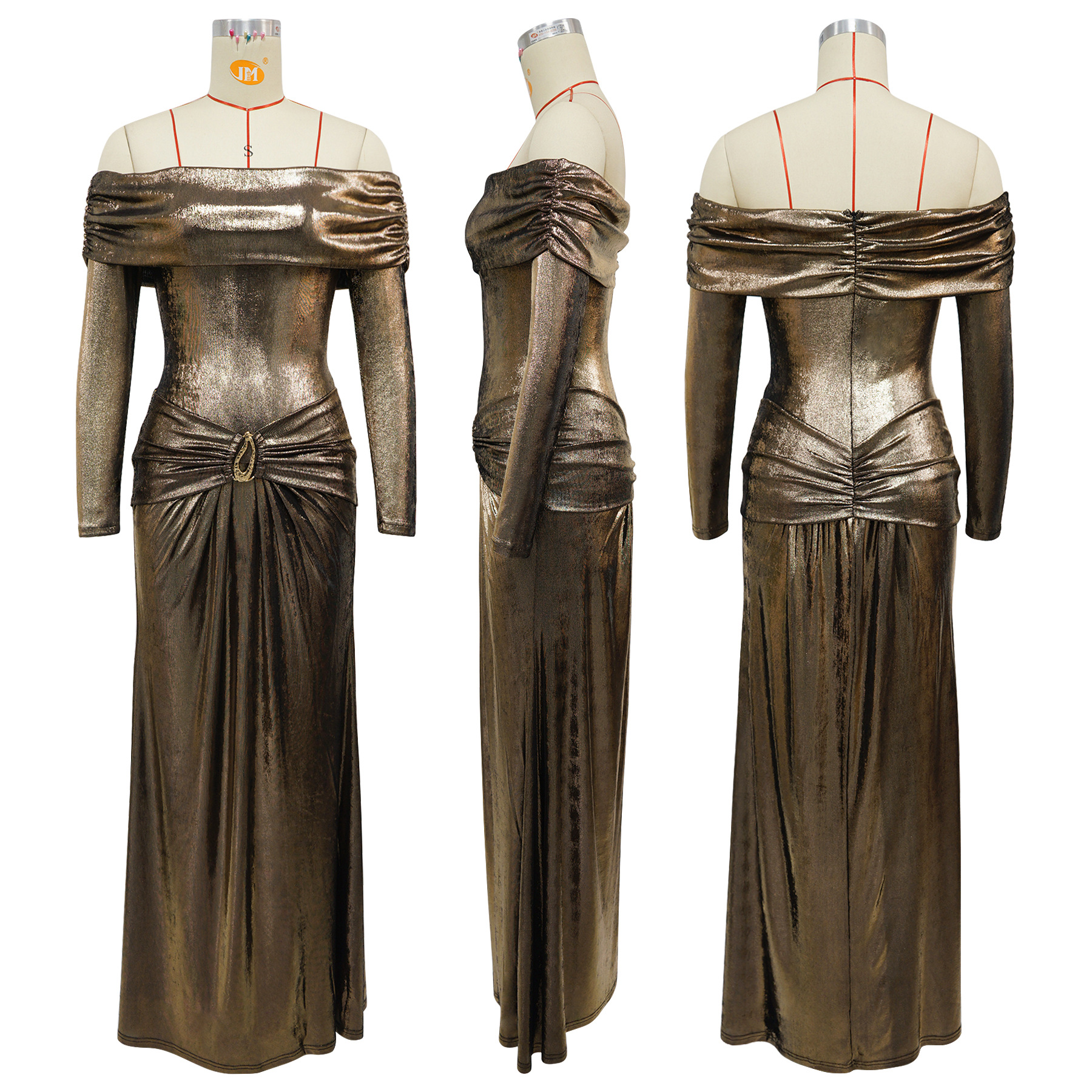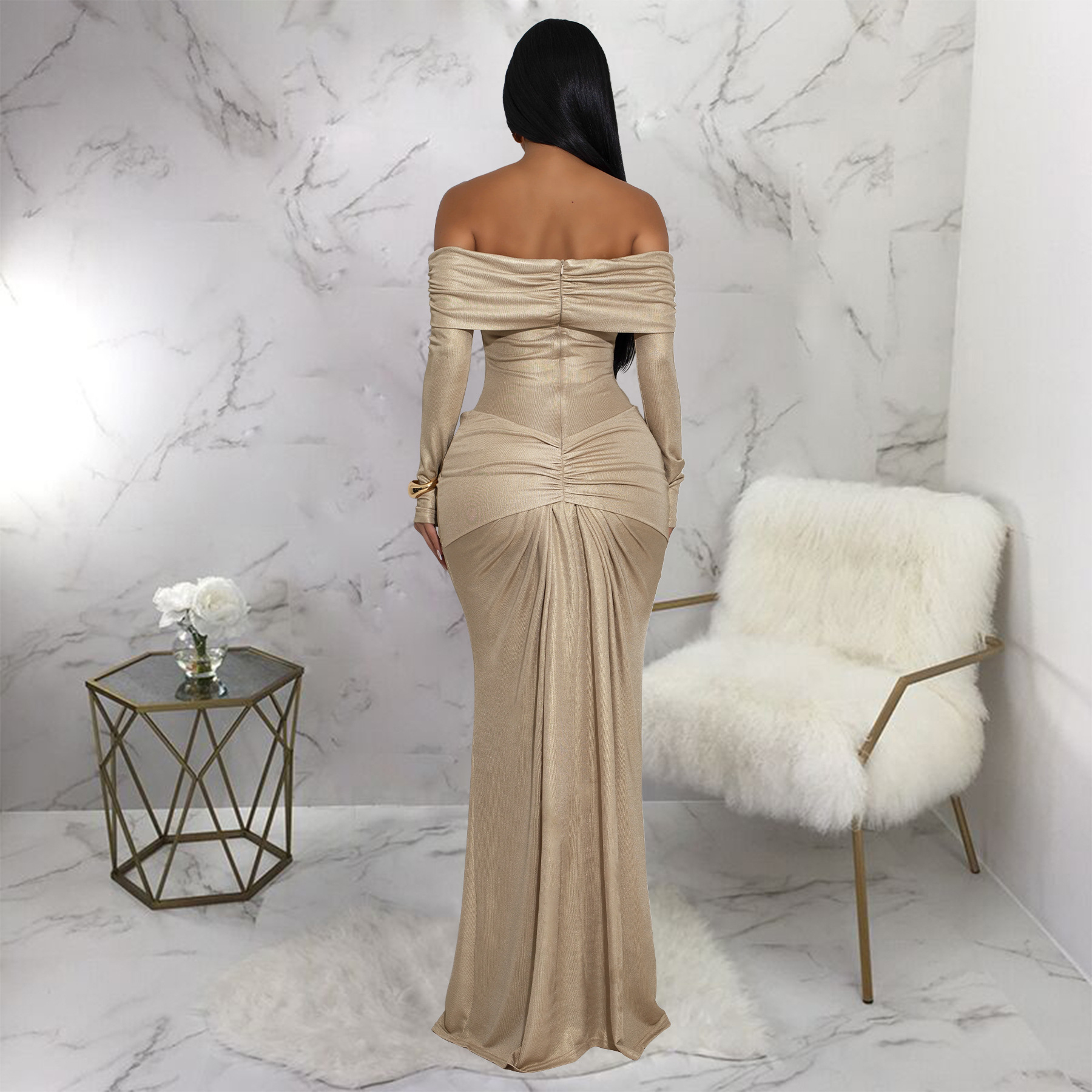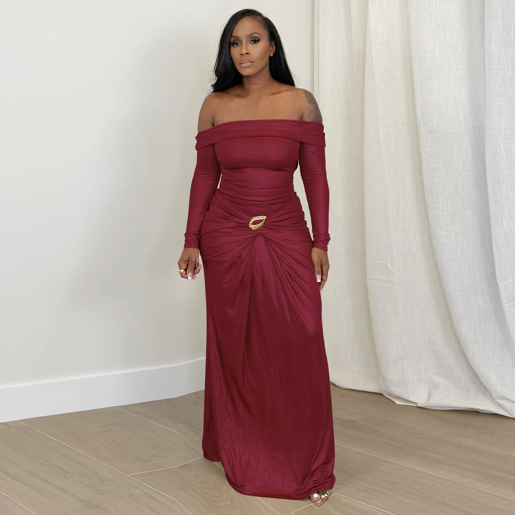 Copy| Product Name | Women's Sexy Off Shoulder Slim Fit Long Sleeve Glossy Long Dress |