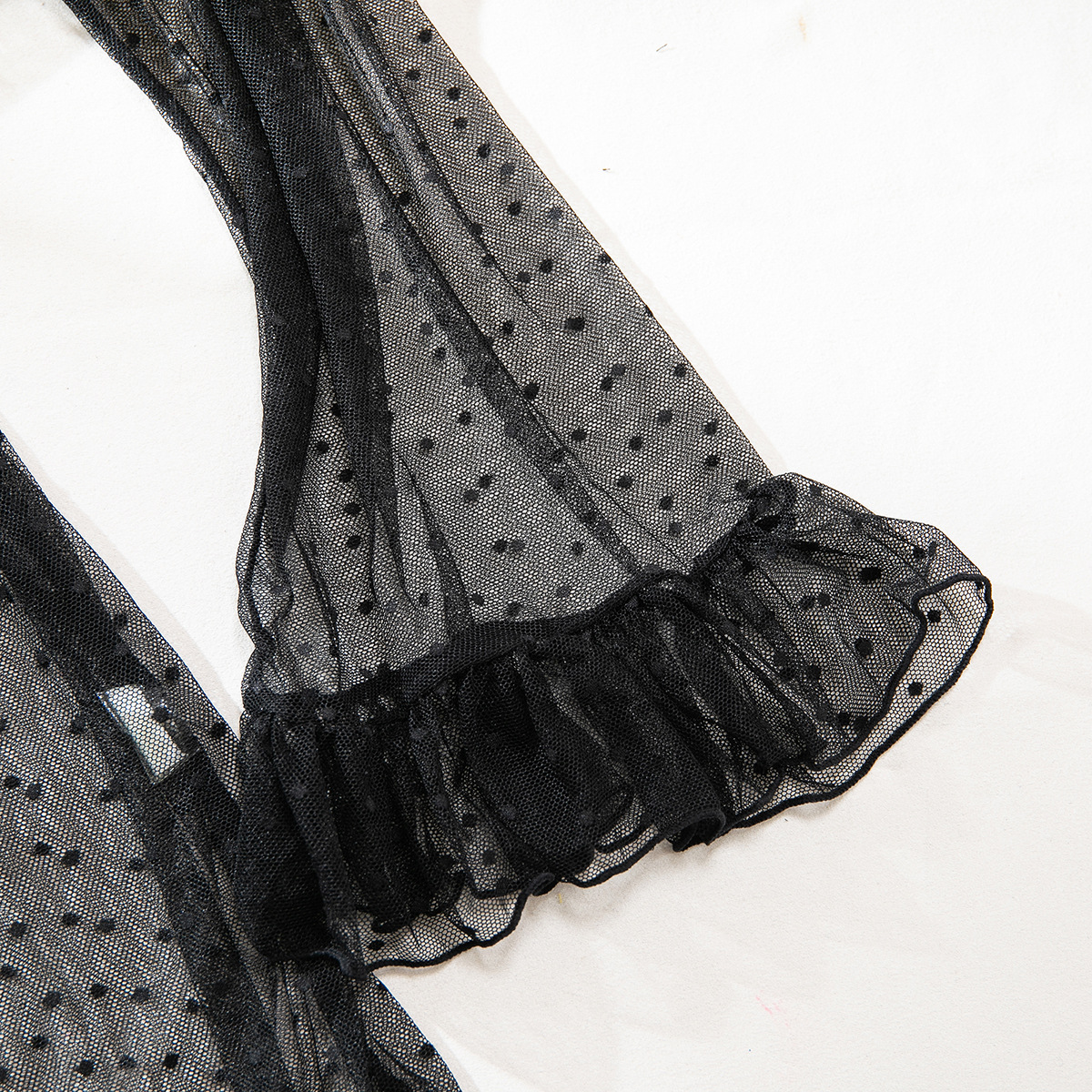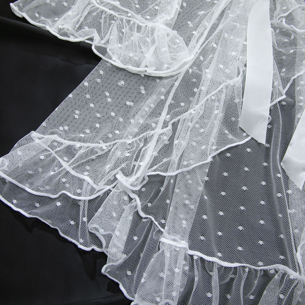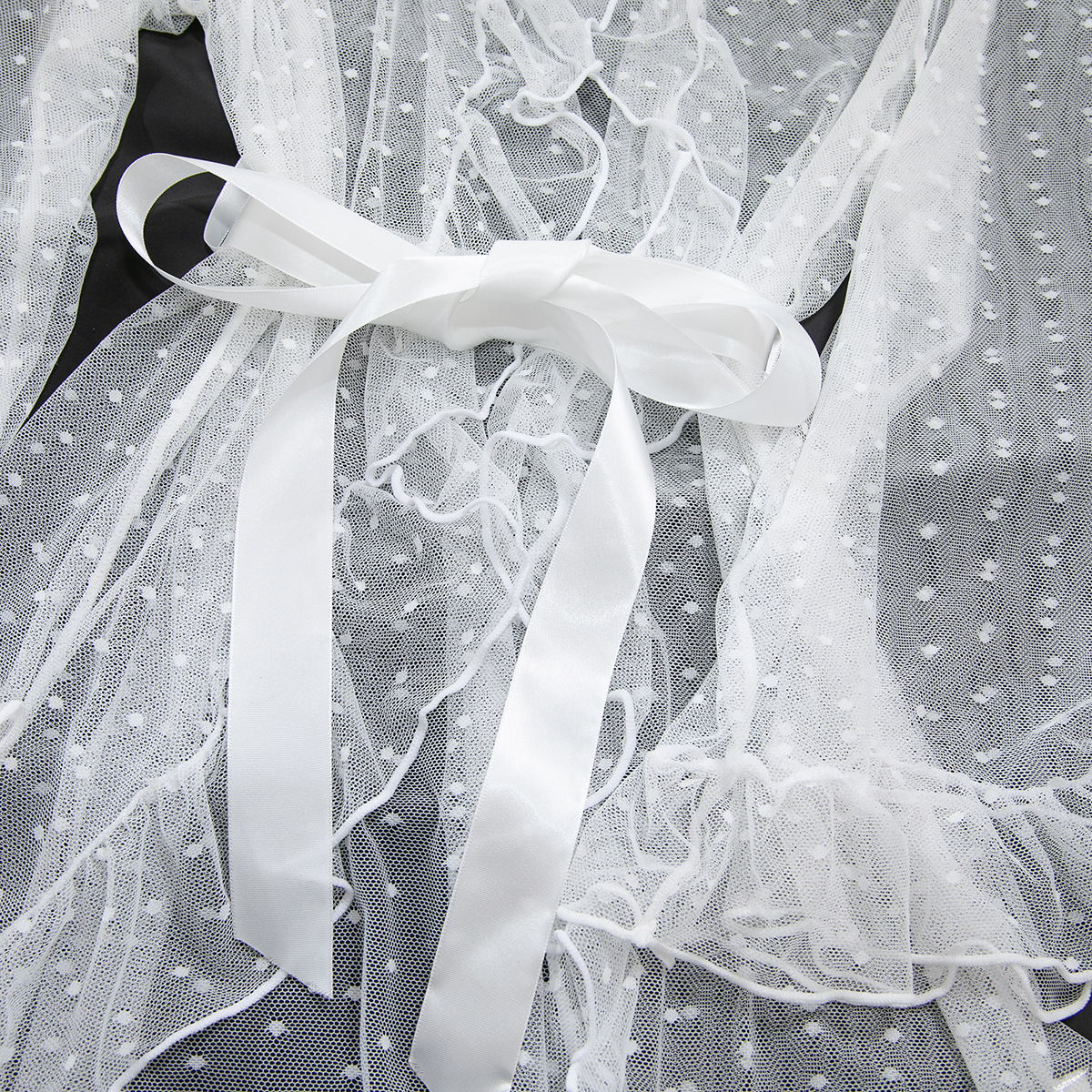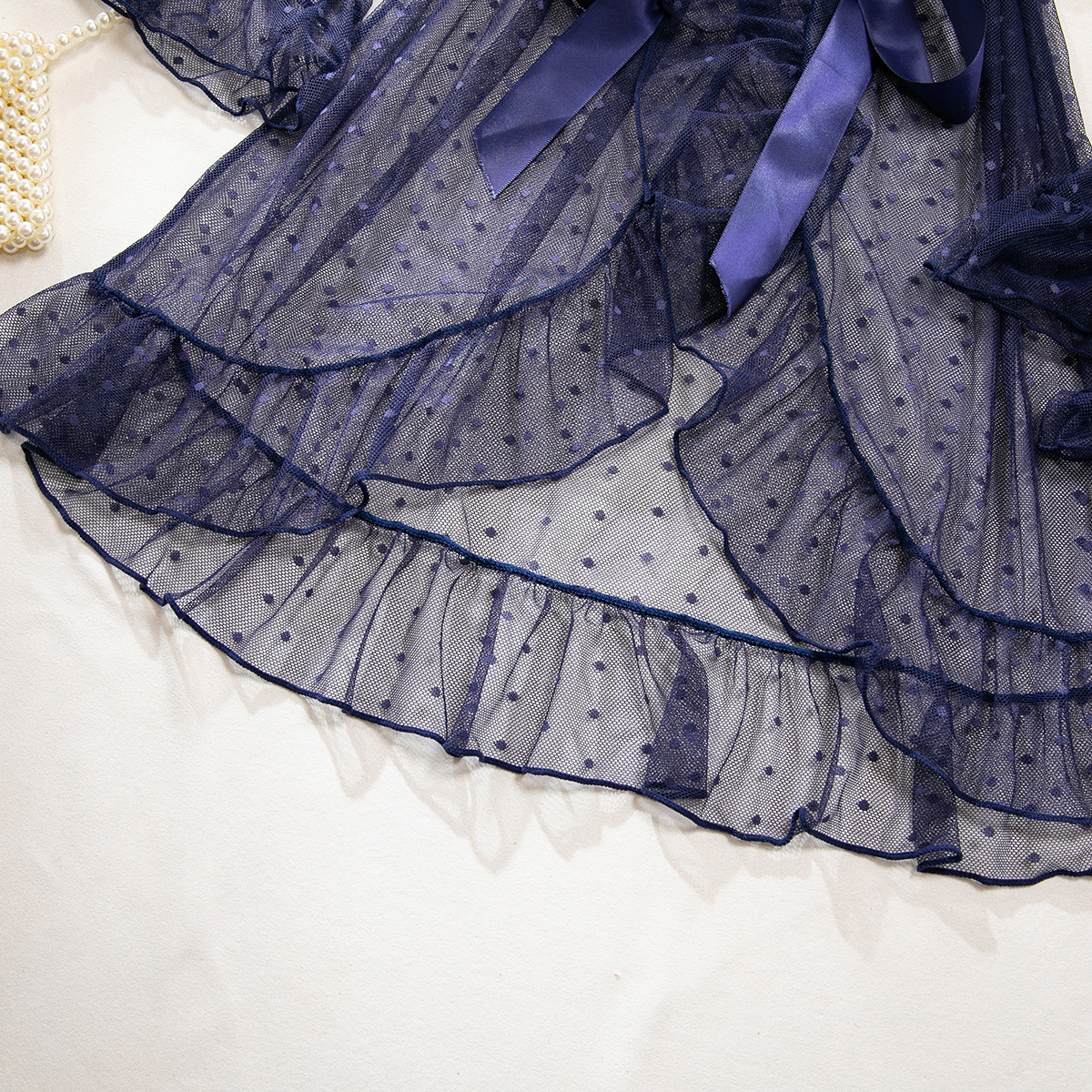Product Name Women's Sexy Polka Dot See-Through Lace Ruffle Robe Three-Piece Lingerie