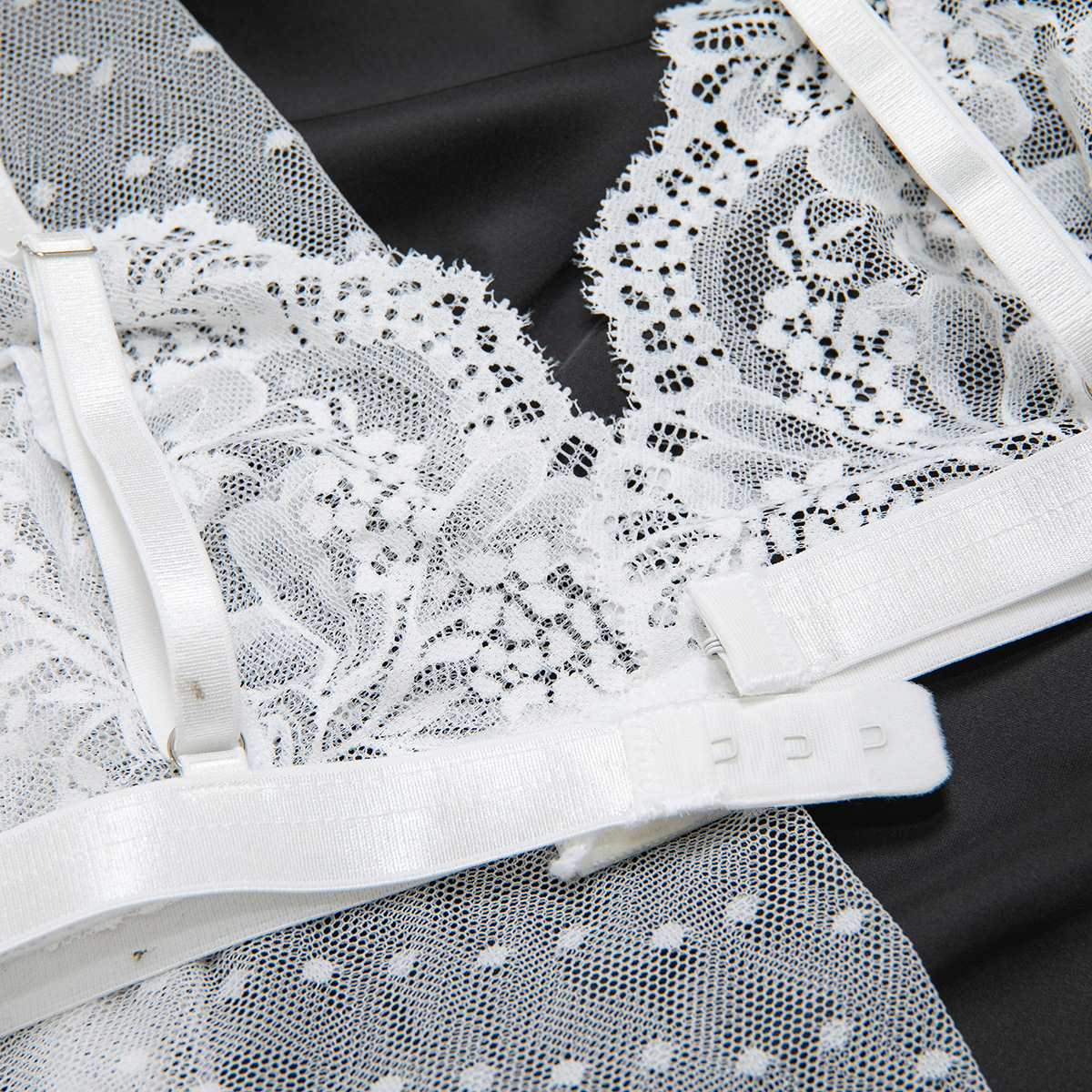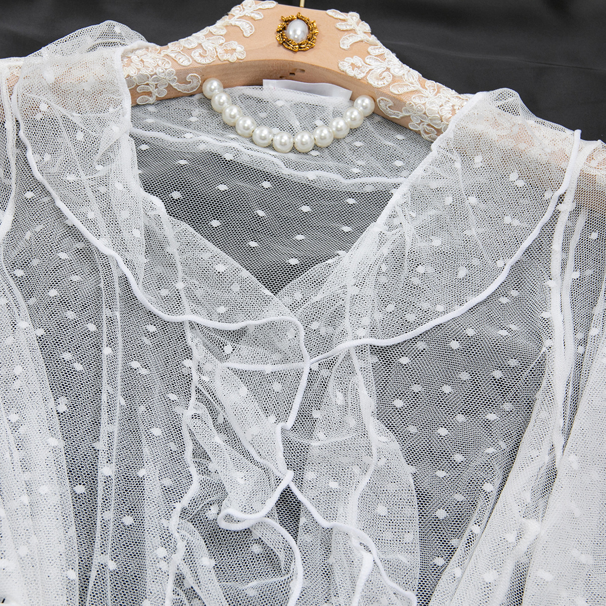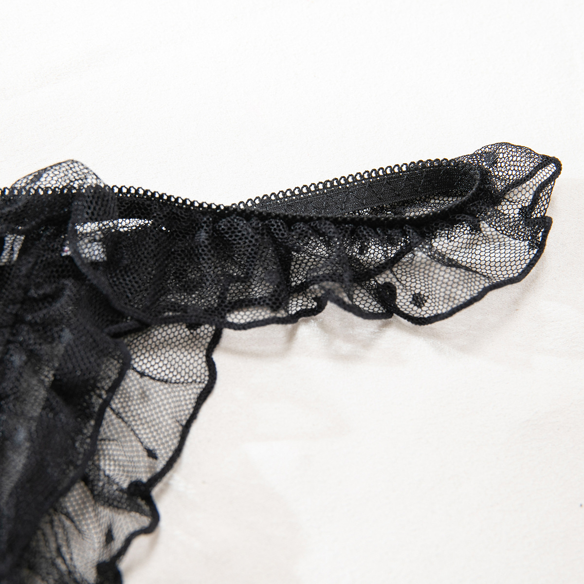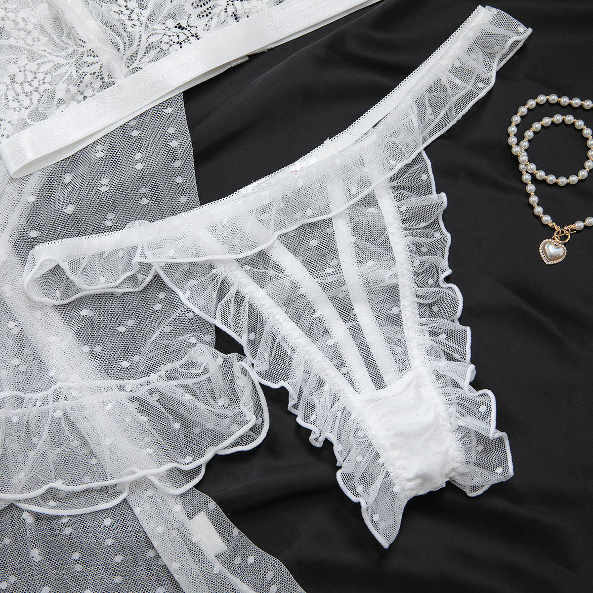 Product Name Women's Sexy Polka Dot See-Through Lace Ruffle Robe Three-Piece Lingerie