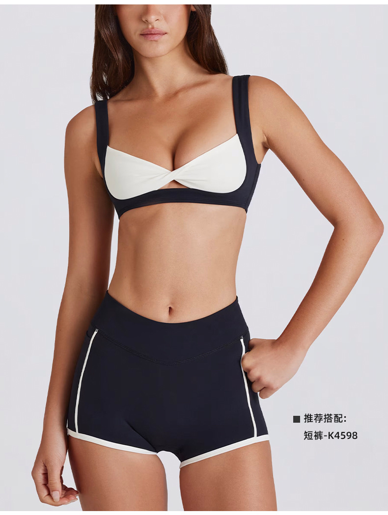 Copy| Product Name | Women's Sexy Removable Seamless Color-Blocking Knot Front Tank Sports Bra |