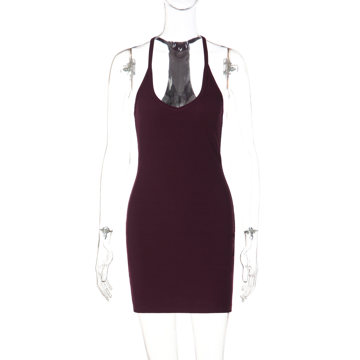 Copy| Product Name | Women's Solid Sexy V-Neck Halter Neck Backless Bodycon Dress |