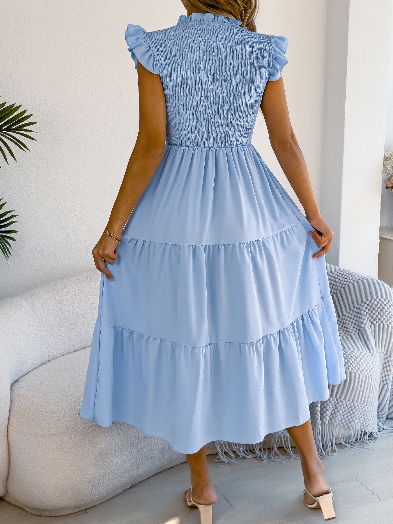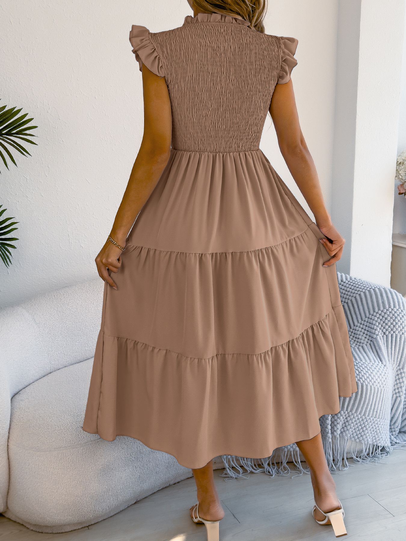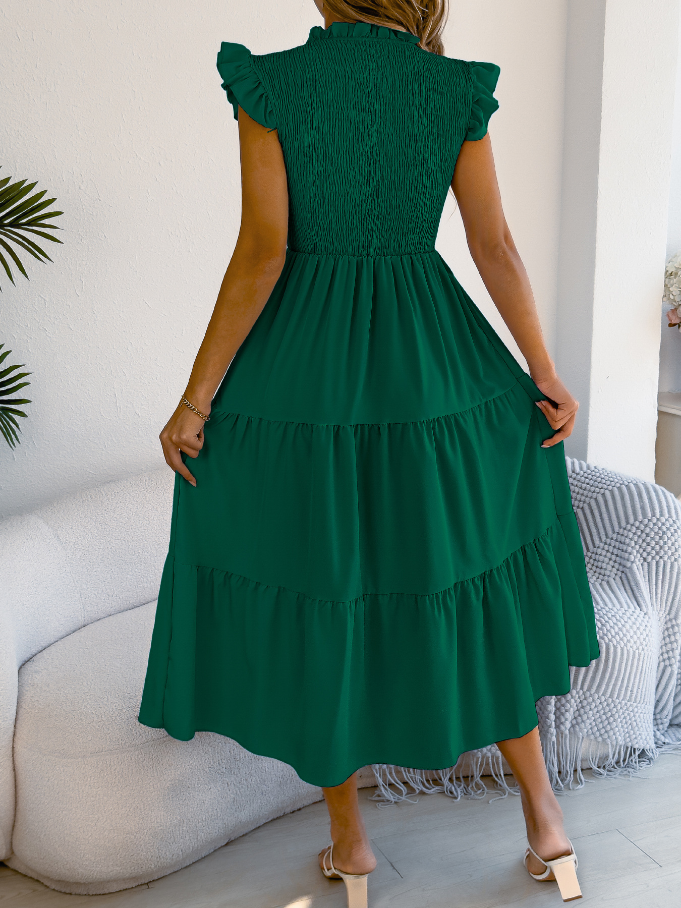 Copy| Product Name | Women's Spring/Summer Solid Ruffle Edge Maxi Dress |