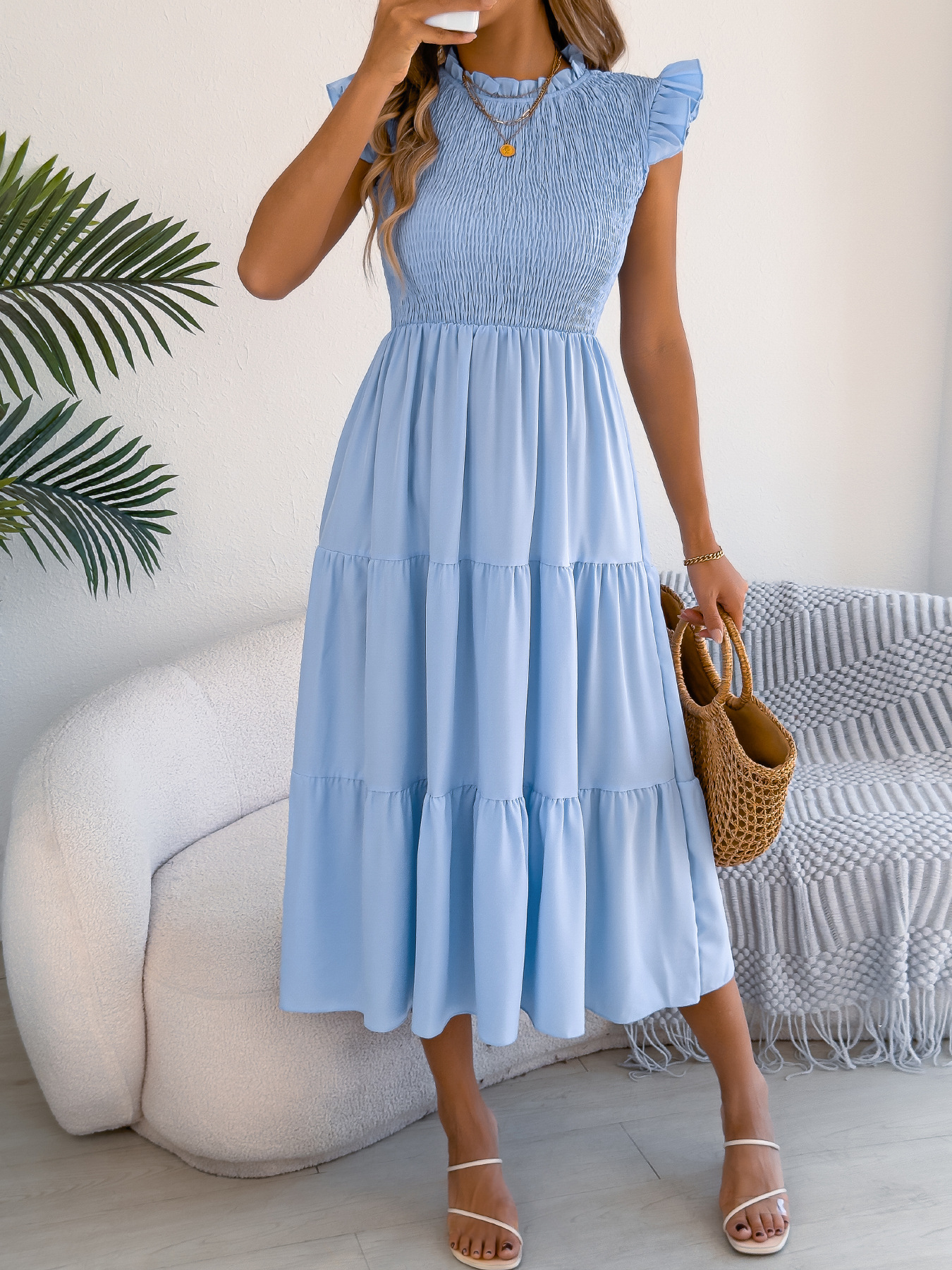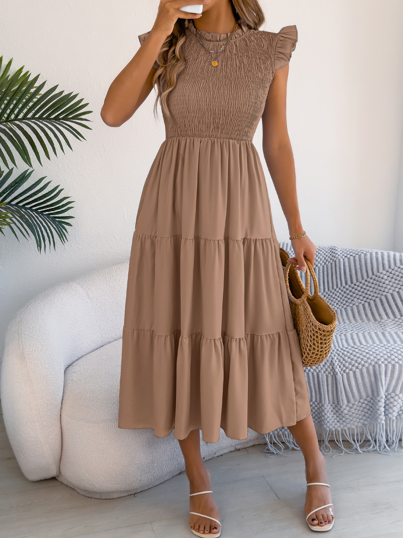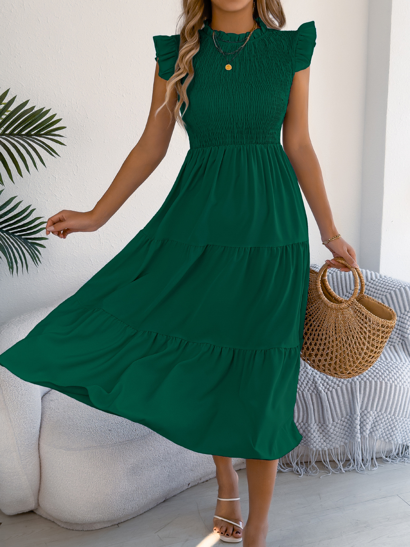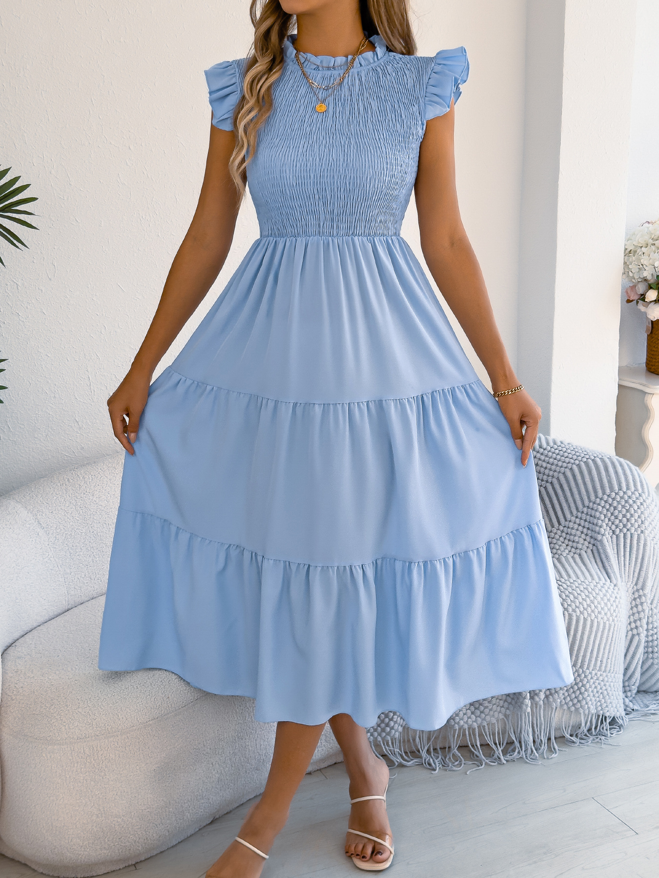 Copy| Product Name | Women's Spring/Summer Solid Ruffle Edge Maxi Dress |