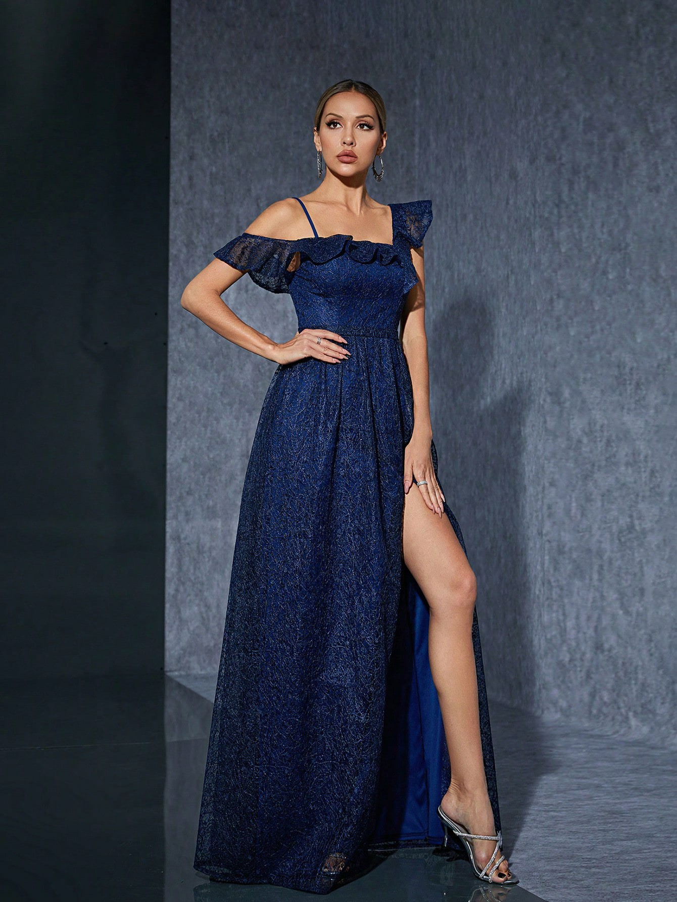 Copy| Product Name | Women's Strap Low-Back Slit Chic Evening Gown |