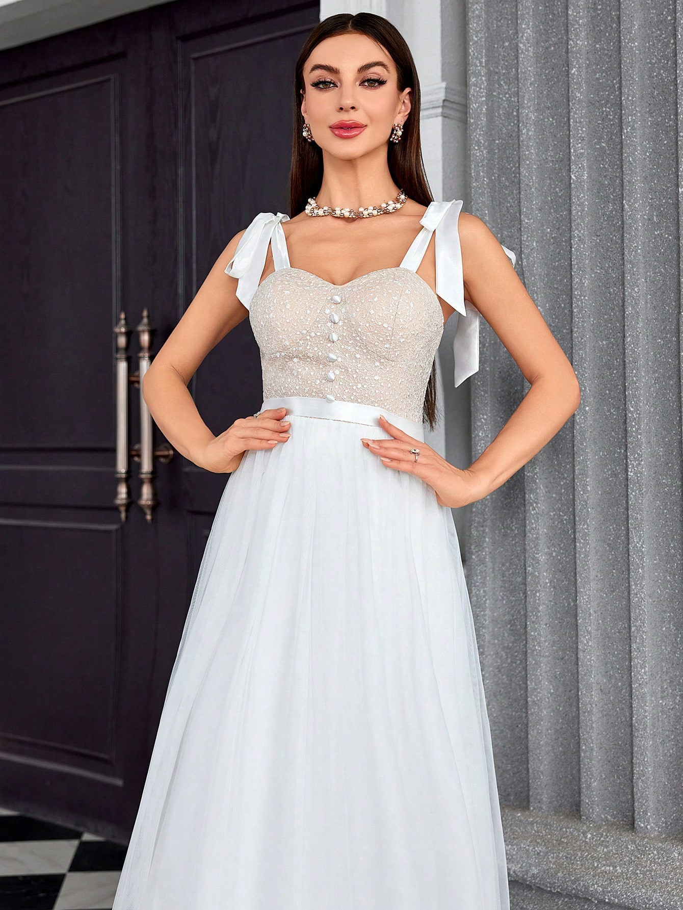Copy| Product Name | Women's Strapless Elegant Chic Patchwork Mesh Evening Dress |