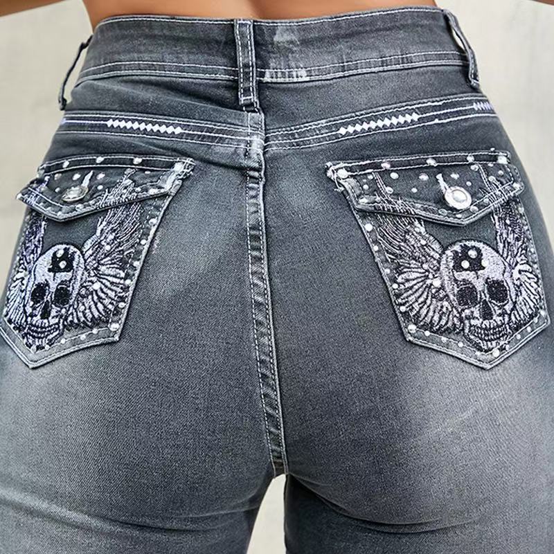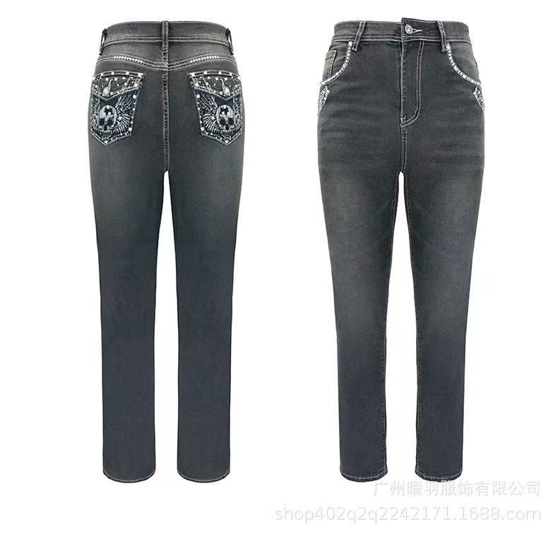 This Women's Stretchy Embroidered Beaded Denim Pants Design Made Of Durable And Stretchy Jeans Fabric. It Is a Must-Have Item For Daily Life. Trendy Wholesale Jeans Is a Indispensable Item For Everyday Fashion. Women’s Jeans With High Waist Is a Must Have Trousers That Lengthening Your Leg Lines And Tightening The Excess Flesh Of Your Waist. Grab a Must Have High Waist Jeans Wholesale For Your Closet, Just Choose Different Matching Tops To Control Every Occasion Easily.