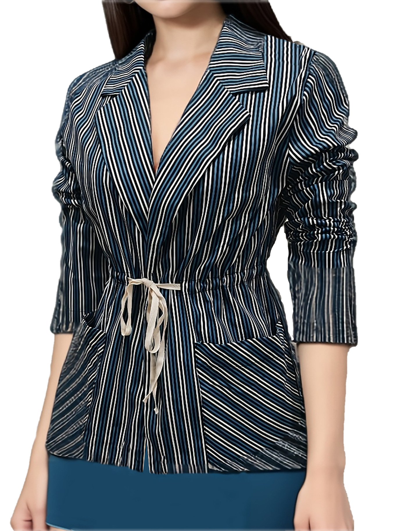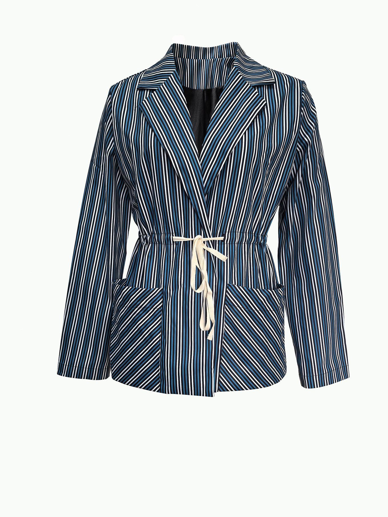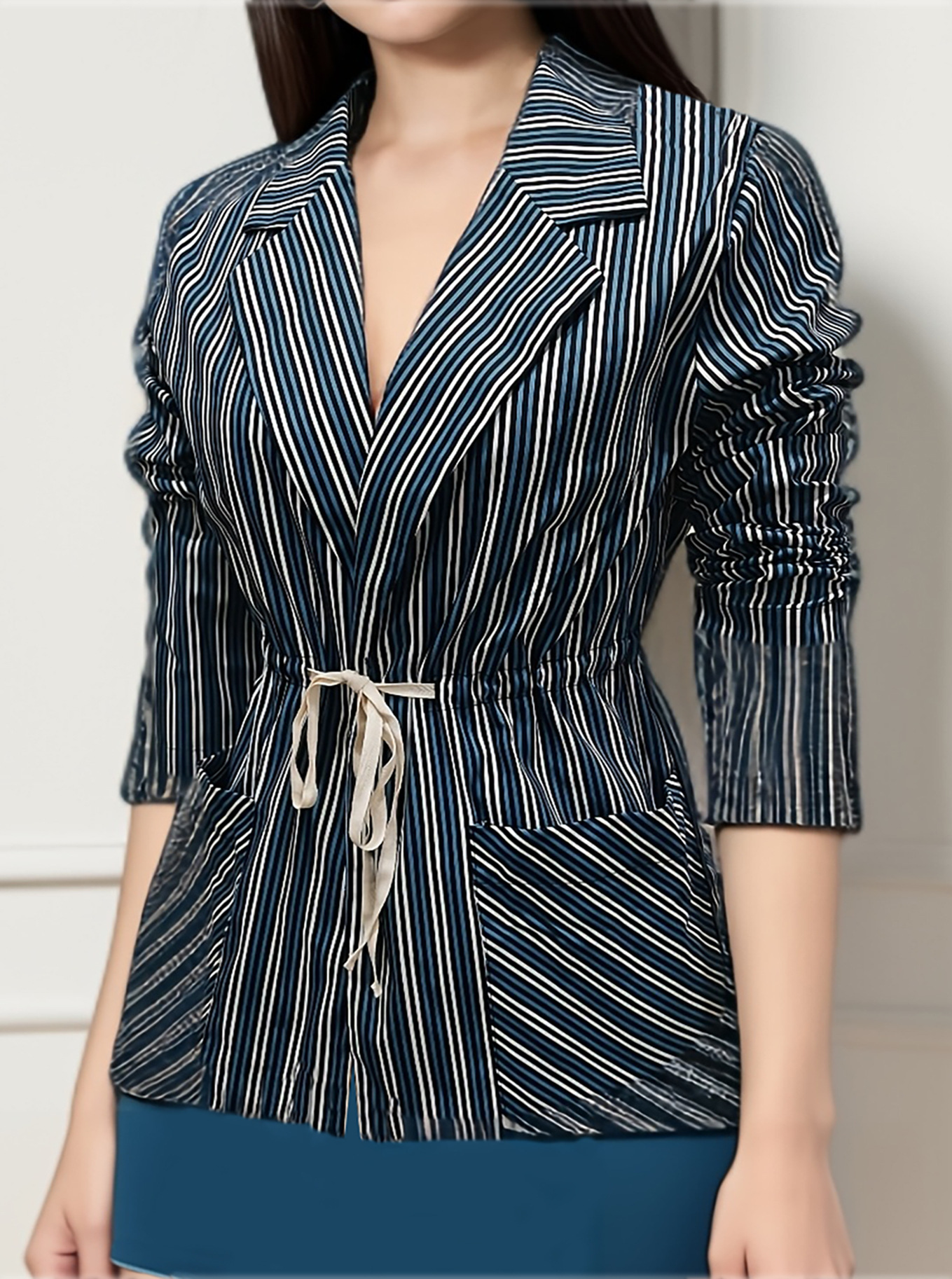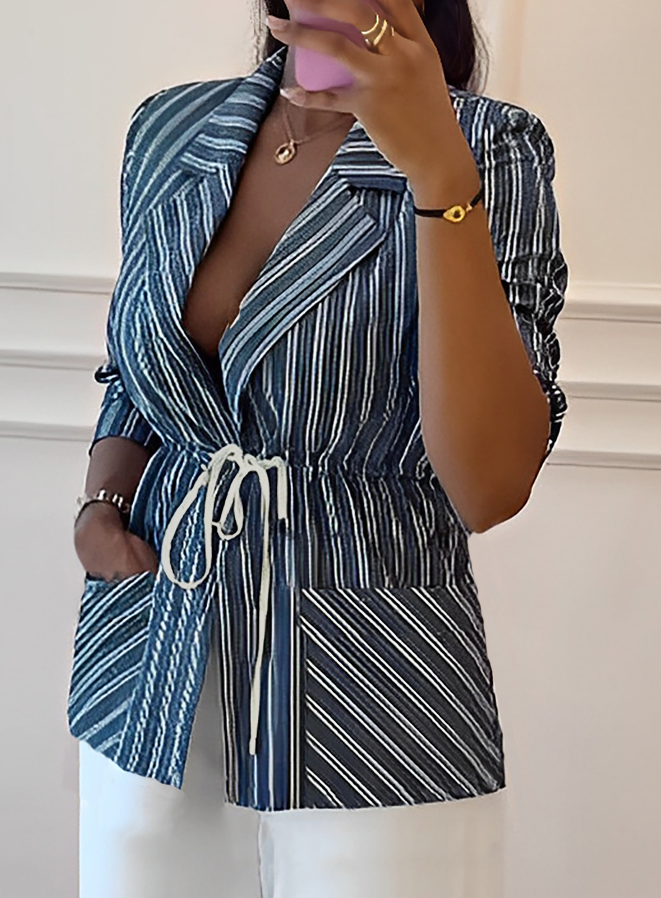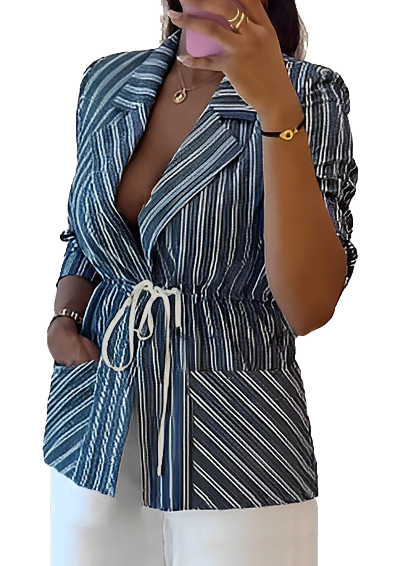Copy| Product Name | Women's Stripe Print Long Sleeve Slim Waist Lace-Up Blazer |