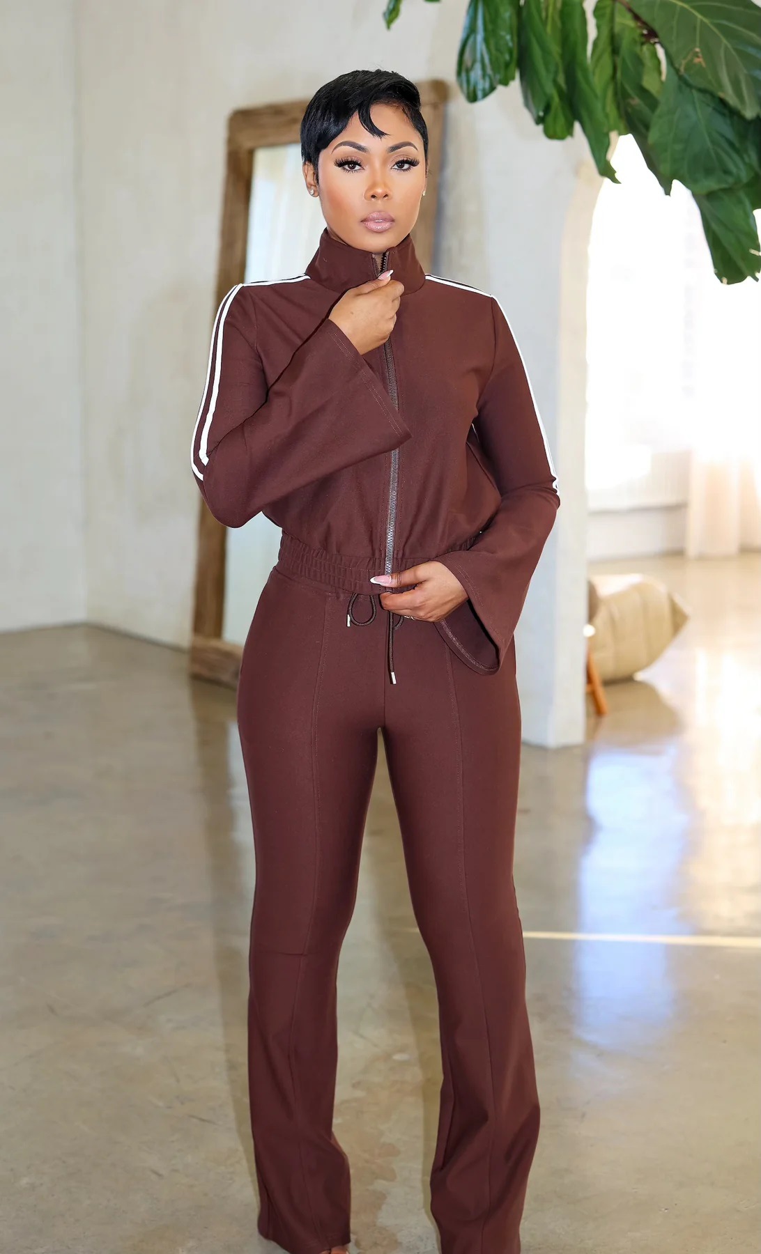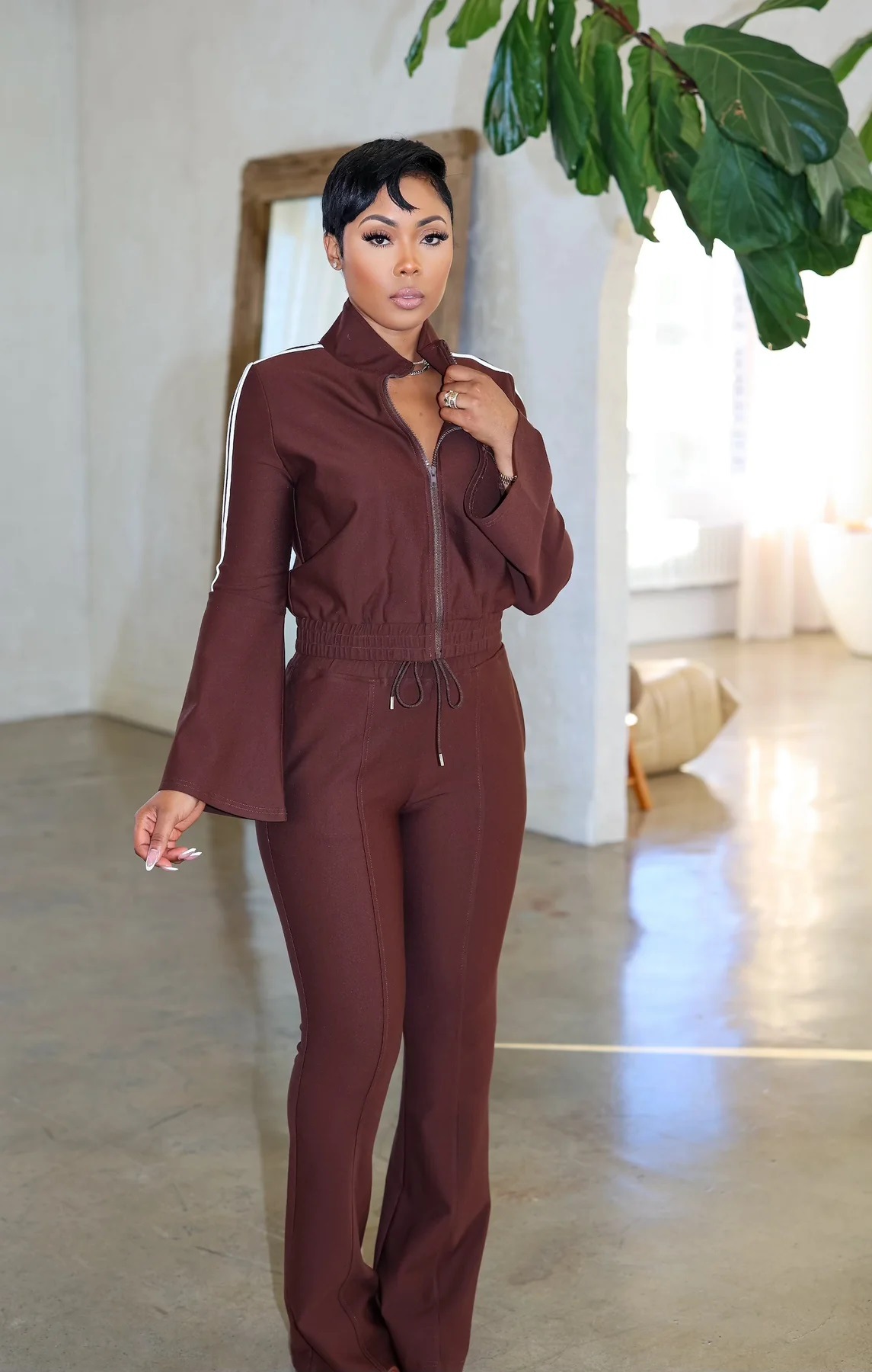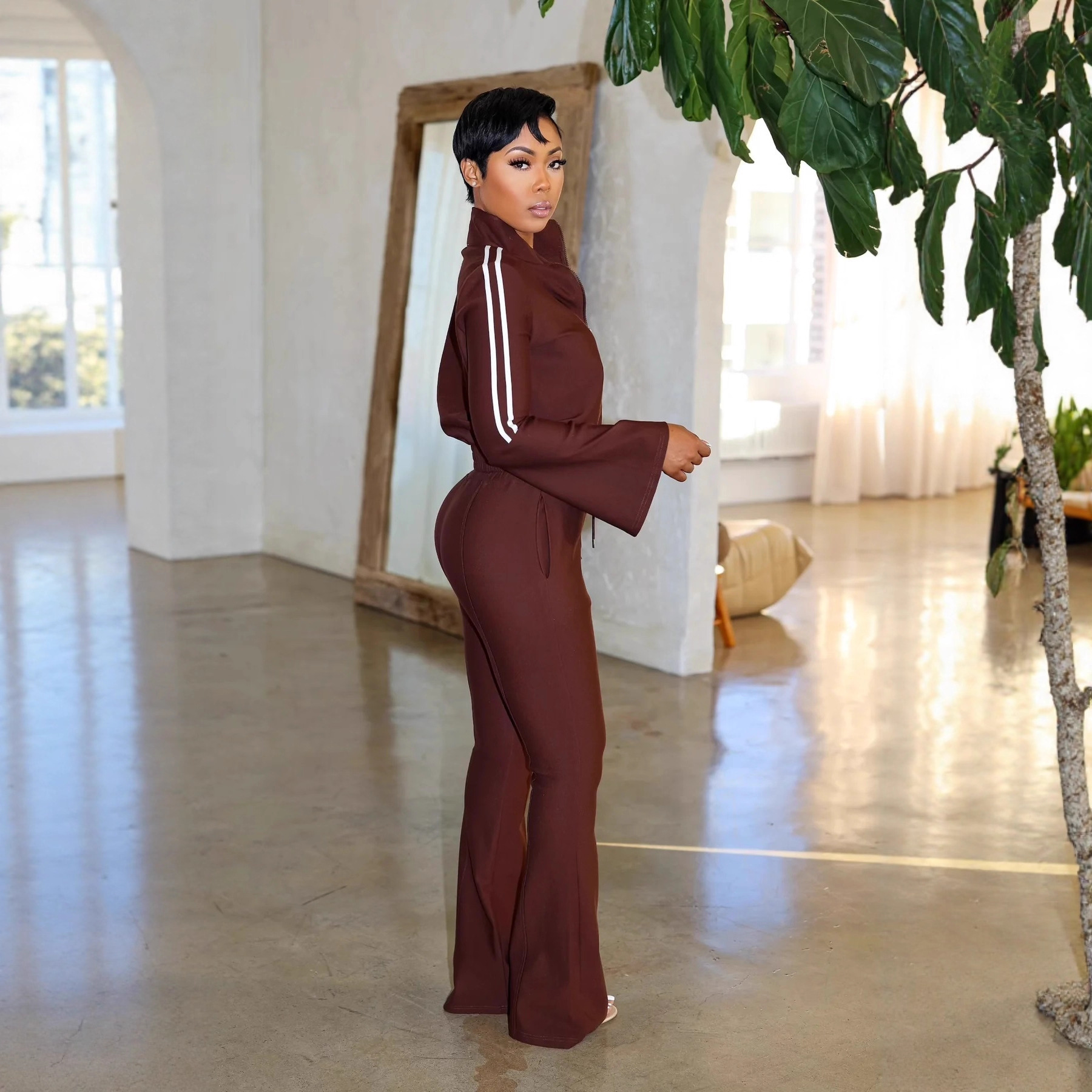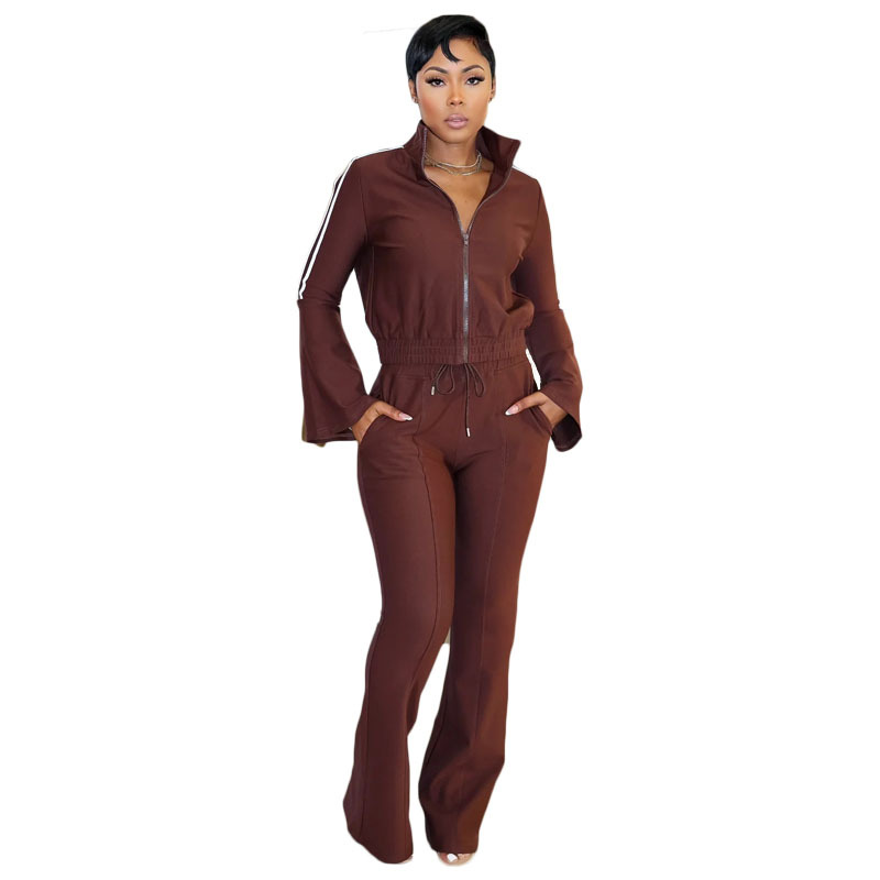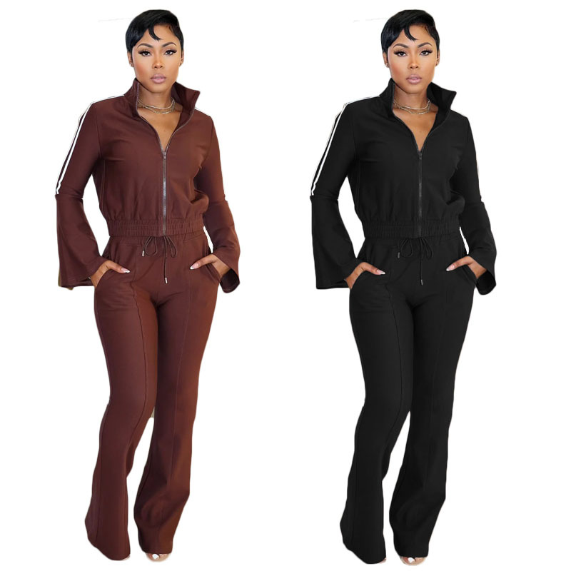 Copy| Product Name | Women's Striped Color Block Bell Sleeve Two Piece Tracksuit Set |