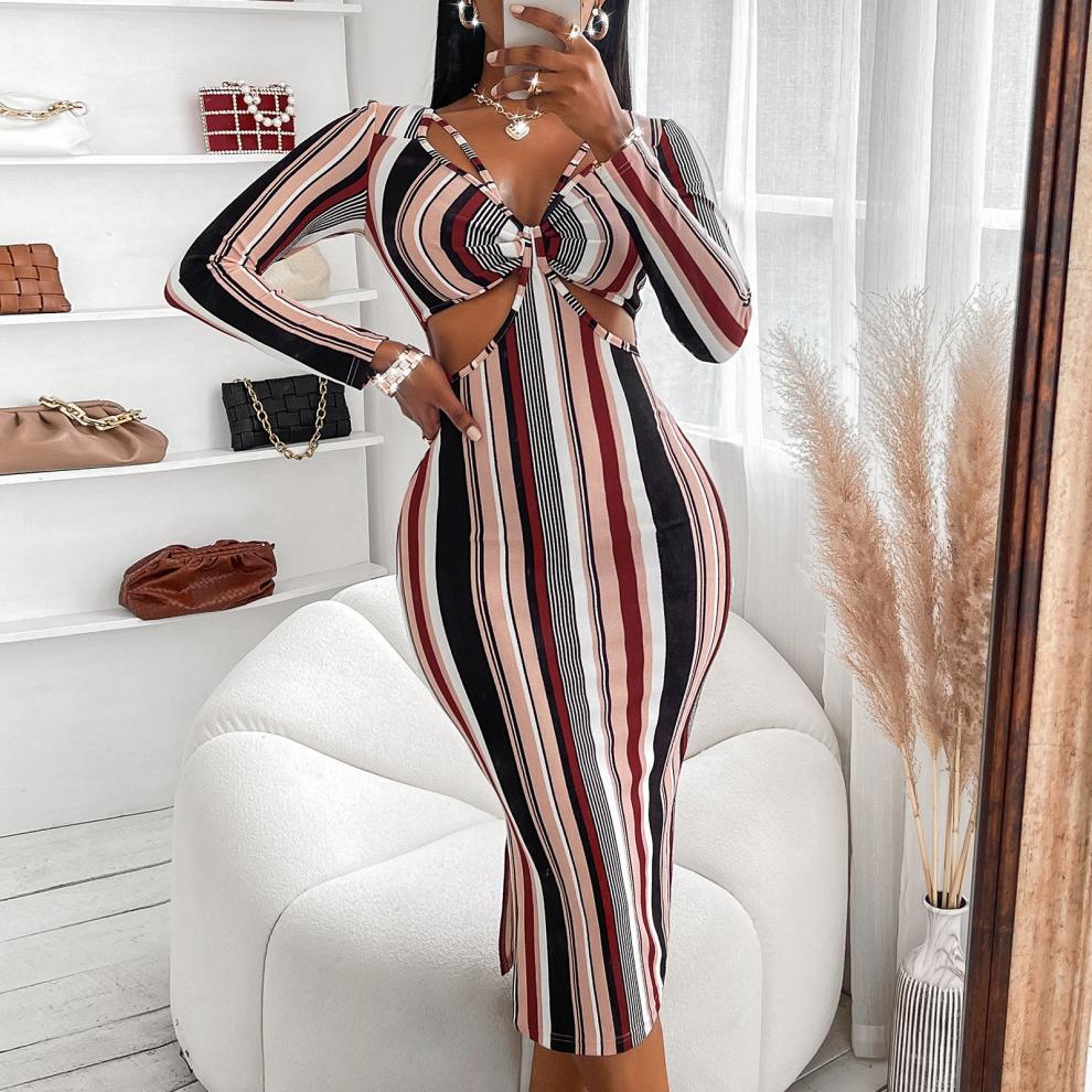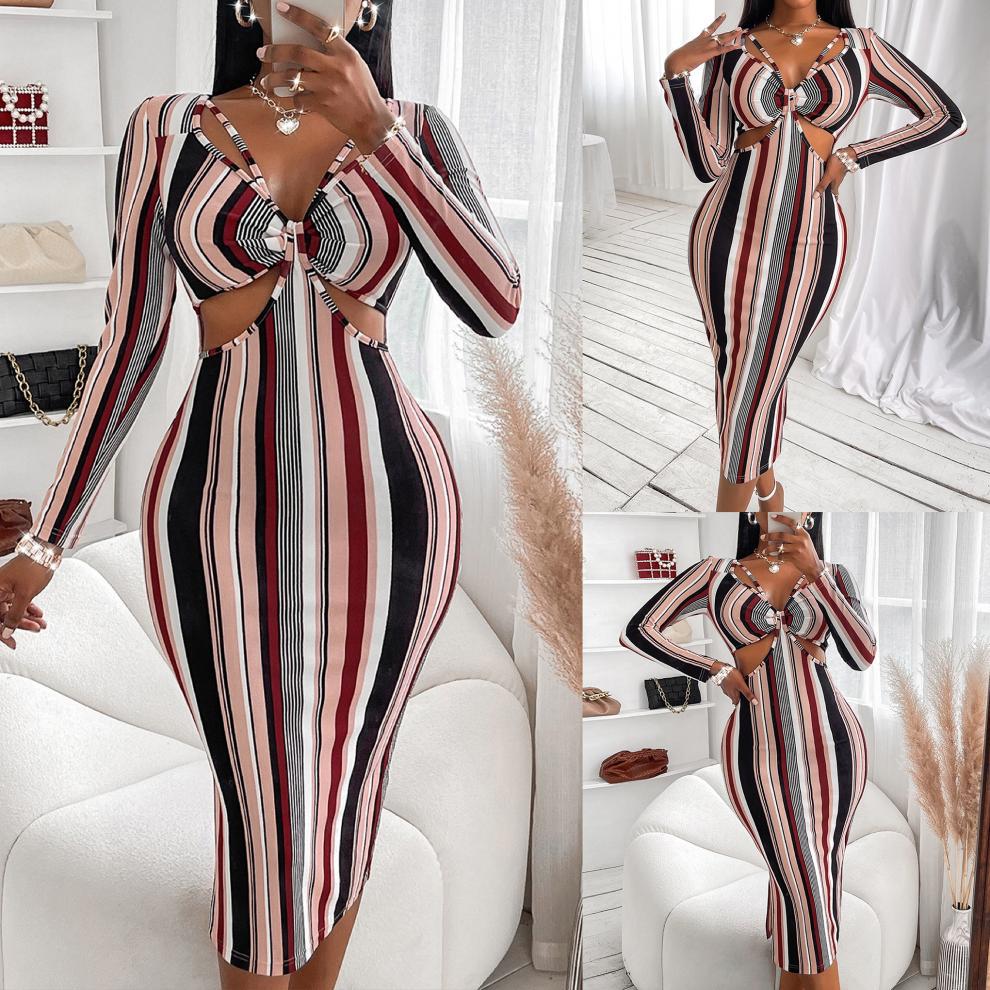 This Women's Stripes Printed v-Neck Long Sleeve Midi Dress Design Made Of High Quality Polyster And Spandex Material. It Come With Good Stretch And Wearing Comfortable And Feeling Freedom. The Tight And Fitted Dress Is The Most Popular Options From Party Girls. Shop Bodycon Dresses At Global Lover And Find Amazing Designs Sequins, Beaded, Diamond, Crystals, Lace... Global Lover Wholesale Women Dresses Online Store Help All Kinds Of Business Owner To Grow Their Business By Providing Vary Dresses At Cheap Price And No Moq Limit.
