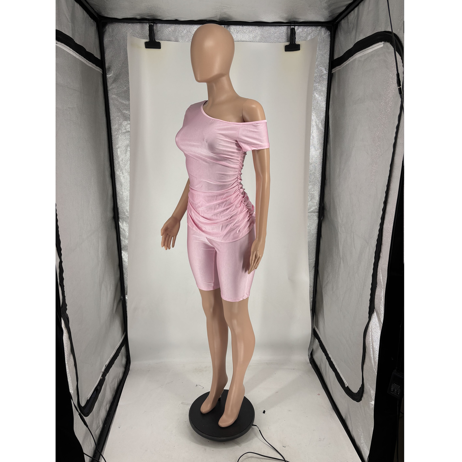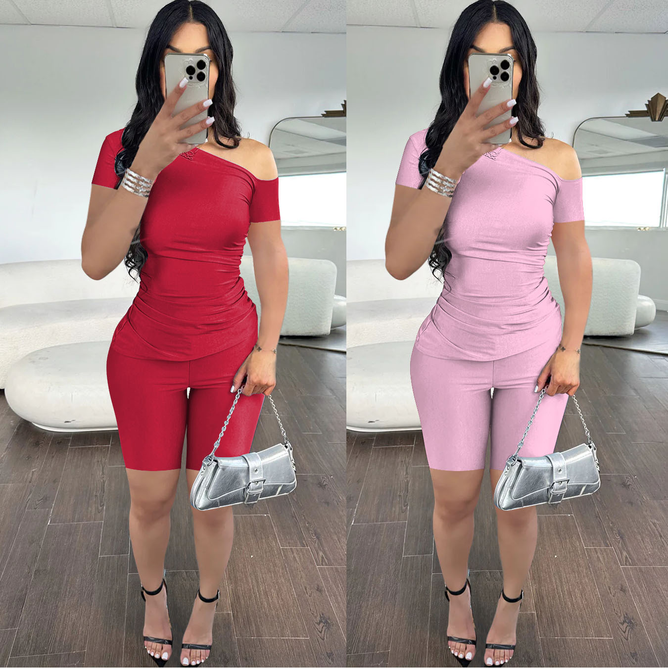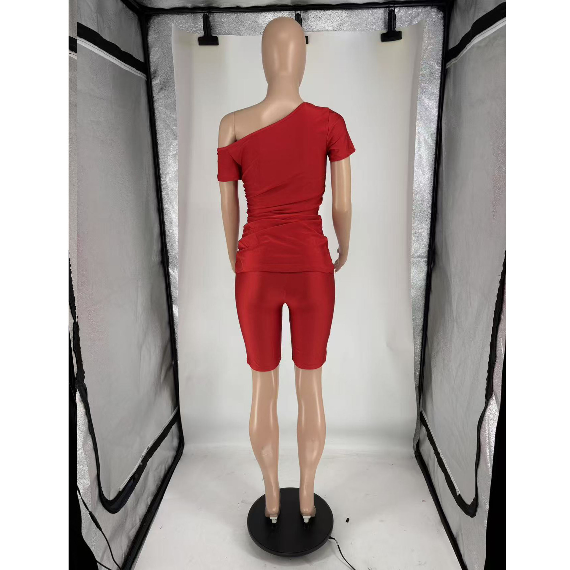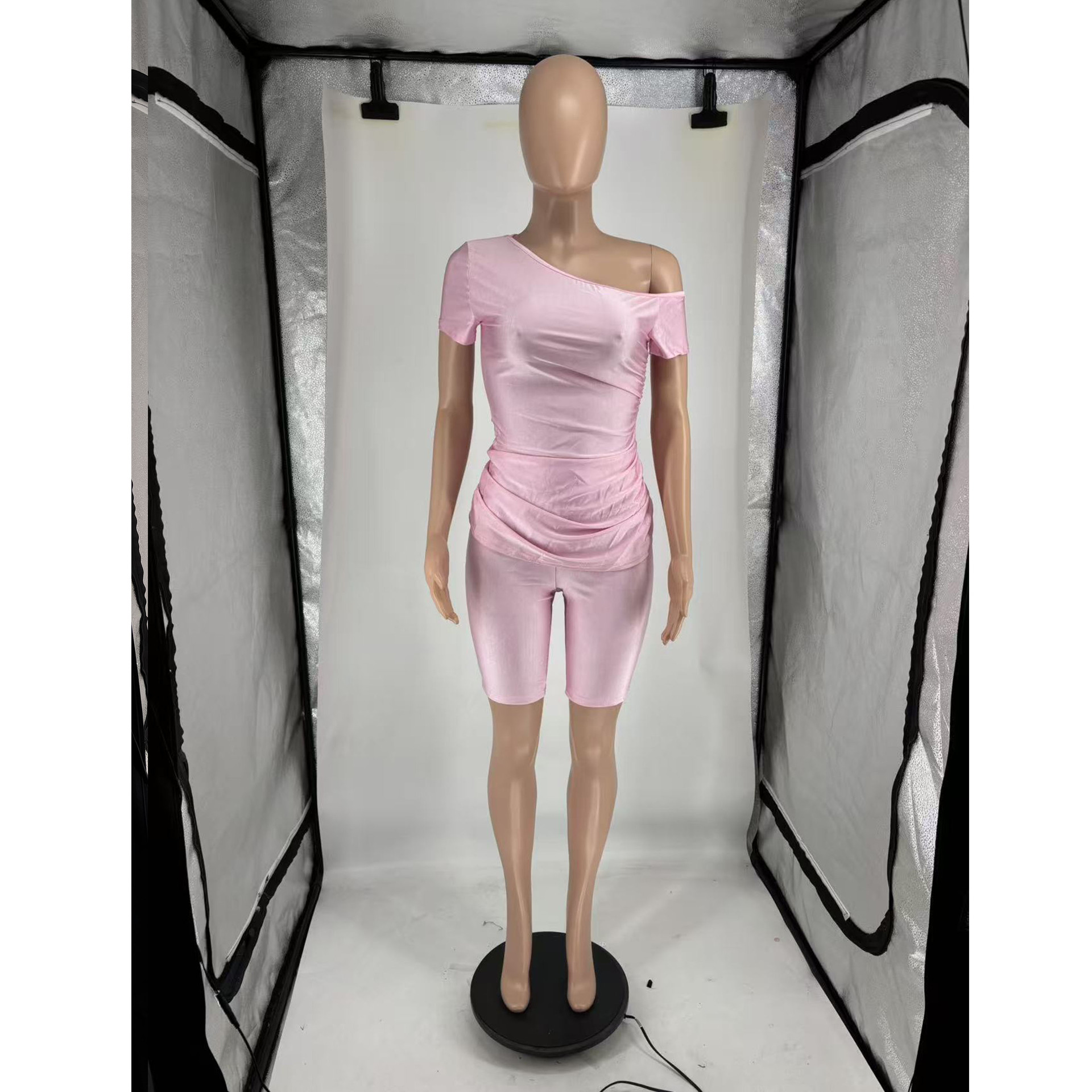 Copy| Product Name | Women's Summer Sexy Slash Shoulder Short Sleeve Solid Color Two-Piece Shorts Set |