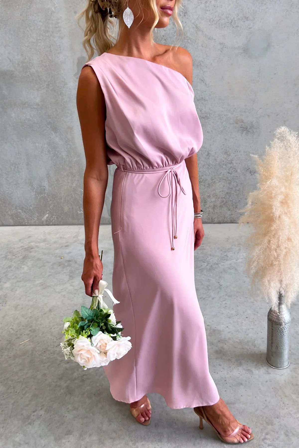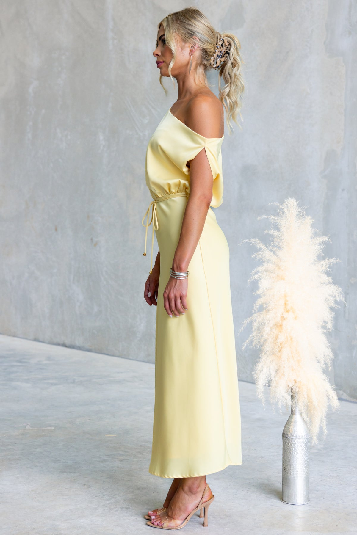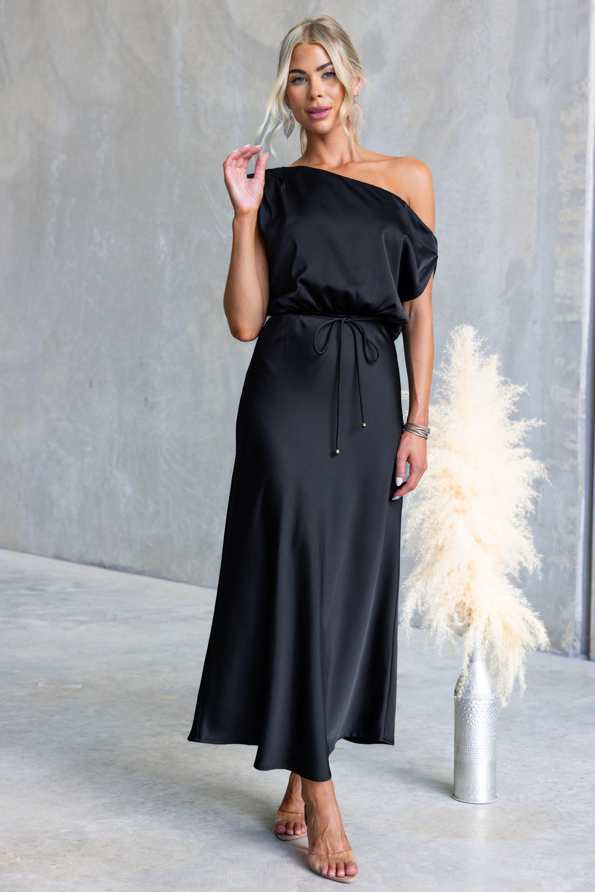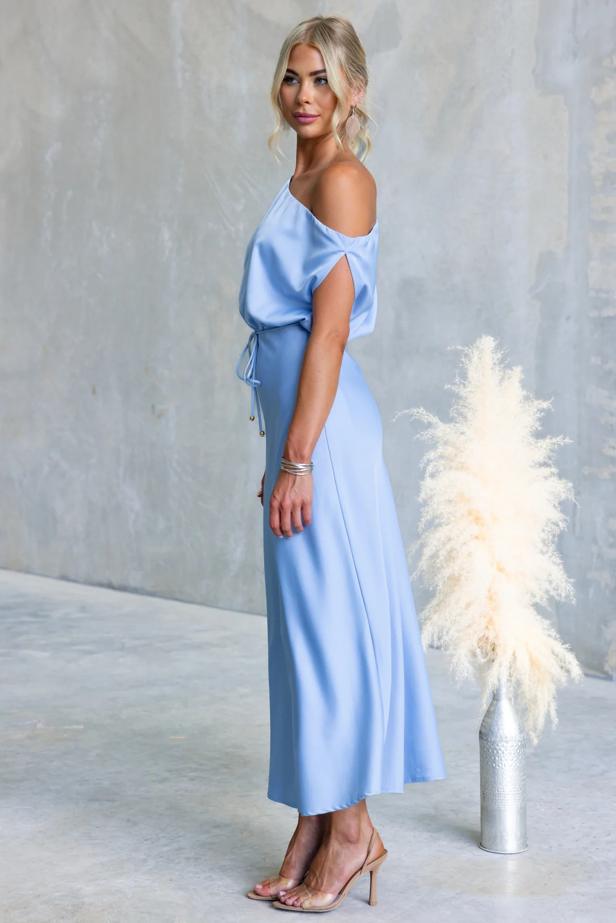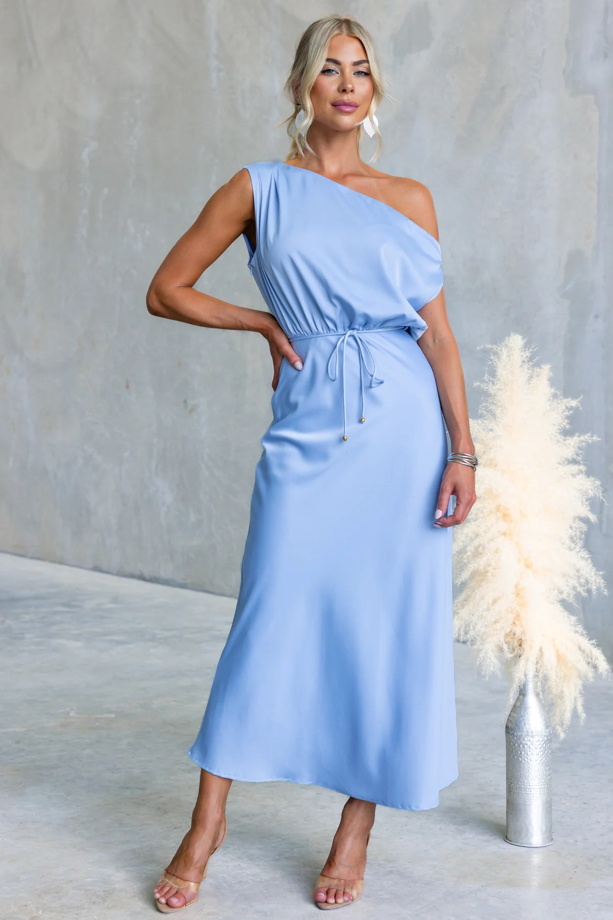 Copy| Product Name | Women's Summer Slash Shoulder Sexy Solid Tie-Waist Dress |