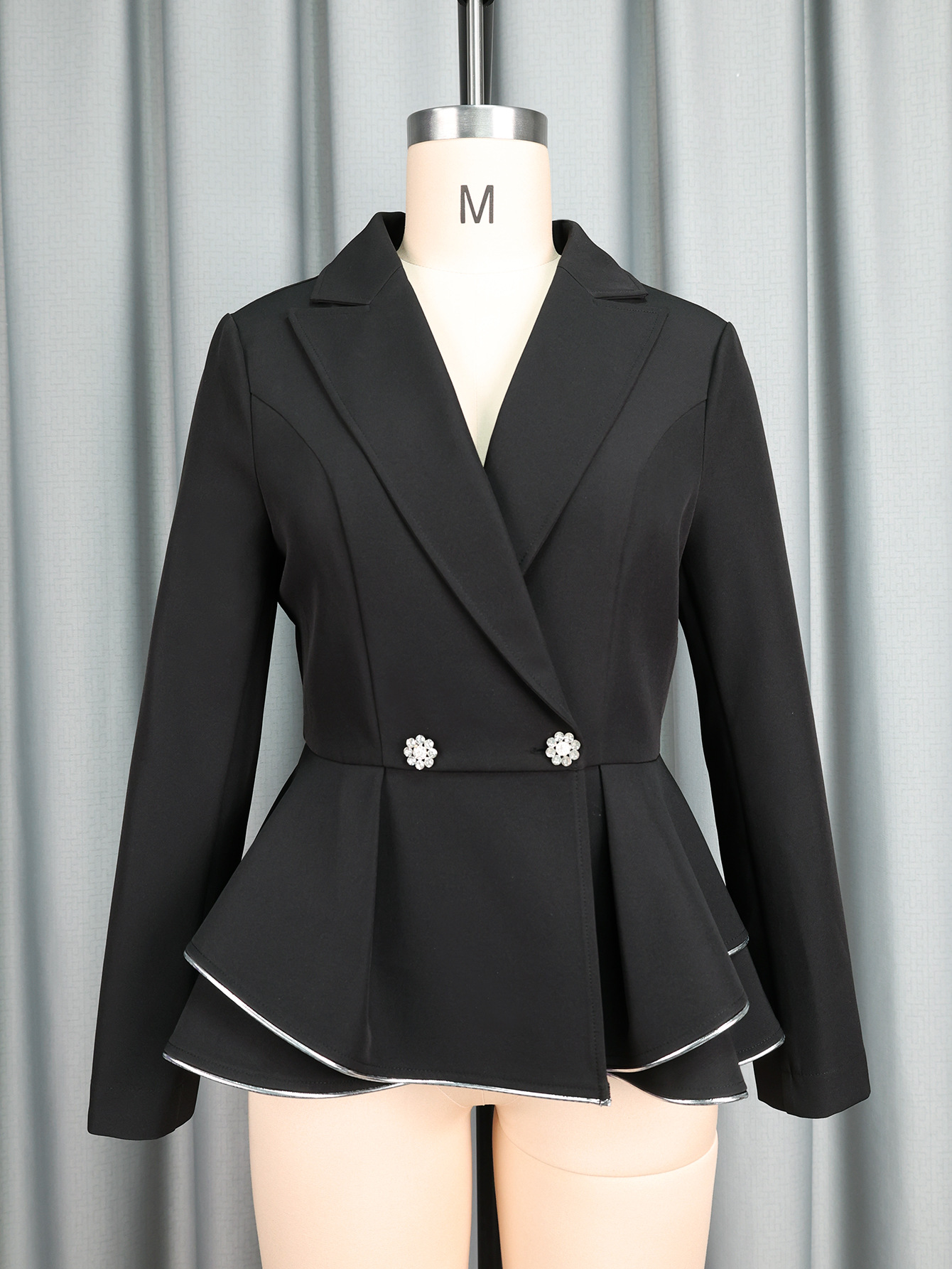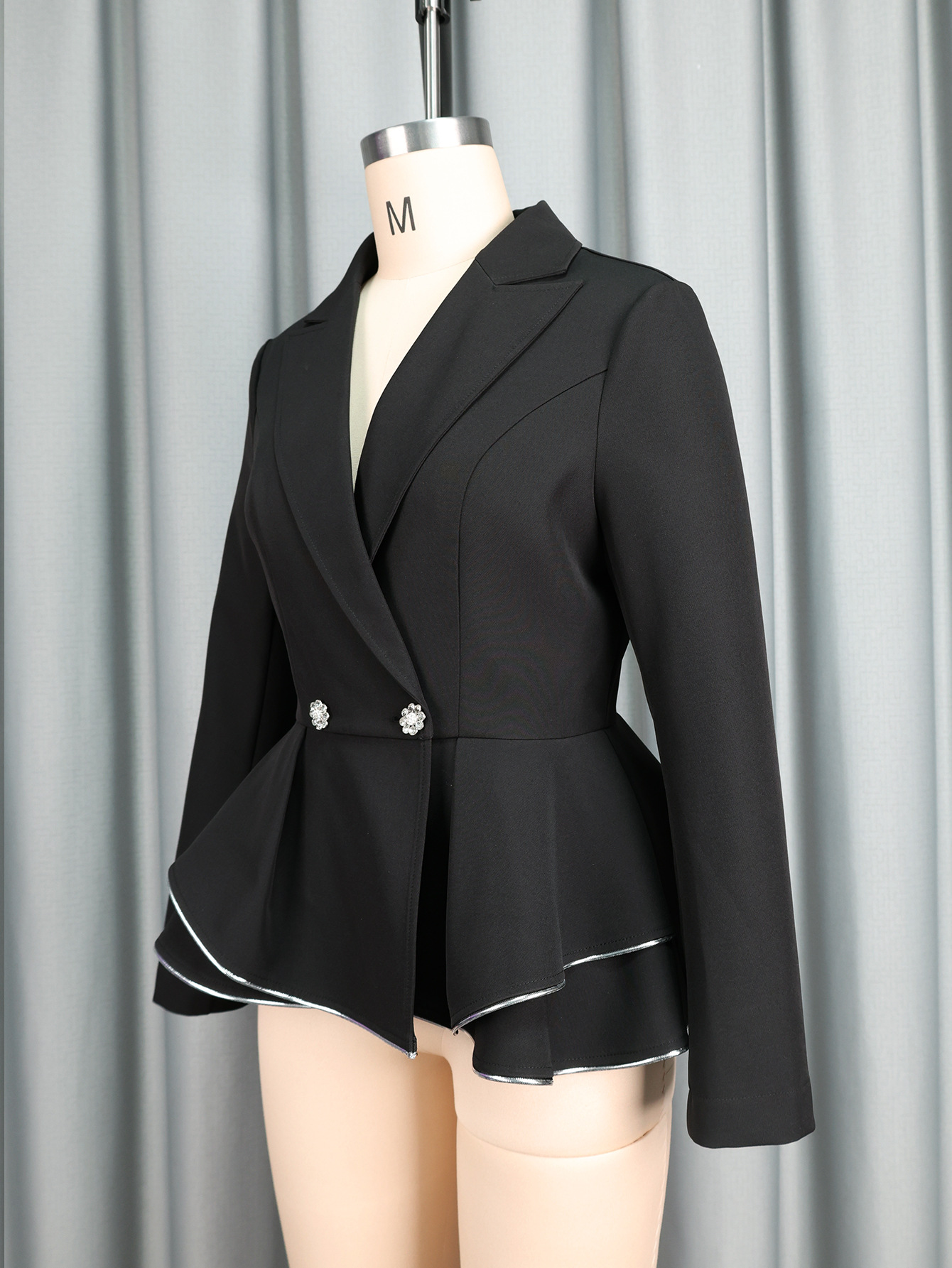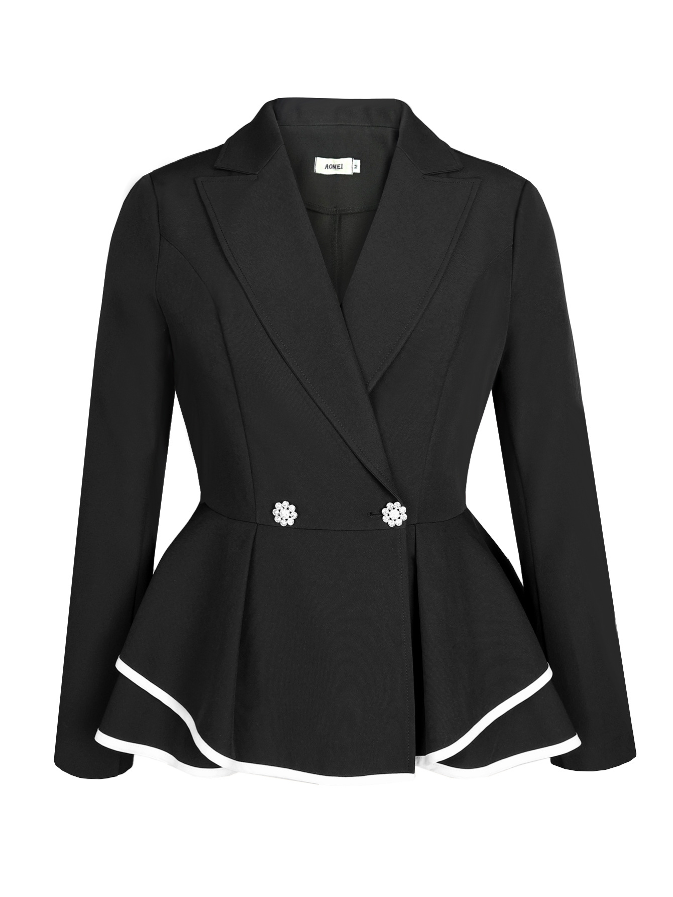 Copy| Product Name | Women turndown collar long-sleeved blazer jacket, irregular ruffled contrasting color casual blazer |
